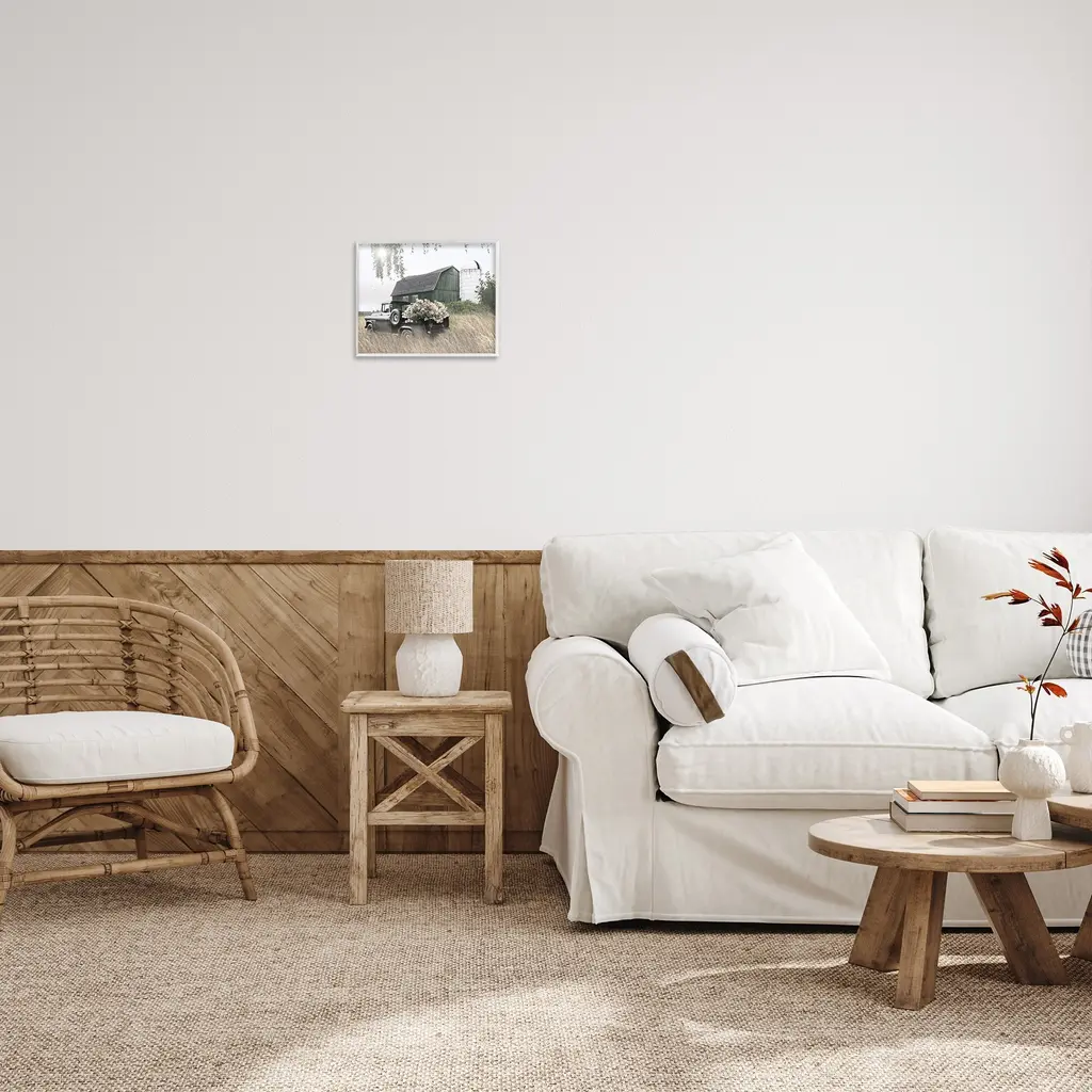 Add dimension to any room with our textured Framed Giclee Artwork. Our framed artwork is securely mounted into a 1.5-inch thick wood grain frame and ready to hang. Frames are available in three alluring styles: black, gray farmhouse and white. In addition, you should check out our oversized options if you want a statement piece. Stupell Wall Art is made in the USA.Features: Dimensions: 14 x 1.5 x 11 FramedFramed Giclee Products are available in the sizes 14"x11", 20"x16" or 30"x24". All Framed Giclee Products have a 1.5" Depth. Wall Art is Ready to Hang with Hardware Free Hanging. No installation required. For Easy Set Up Lean or Layer Artwork on Shelf or Against Wall.Our giclée prints are carefully mounted on a durable MDF backing, and then perfectly finished in a 1.5 inch thick woodgrain frame. Mounted frame colors include black, gray farmhouse and white. Made In USA.Artwork Relates To: Nature, Countryside, Building, Hut, Rural, Barn, Farm, Shack, House, Landscape, Truck, Pickup, Flower, SiloDesign by Lori Deiter