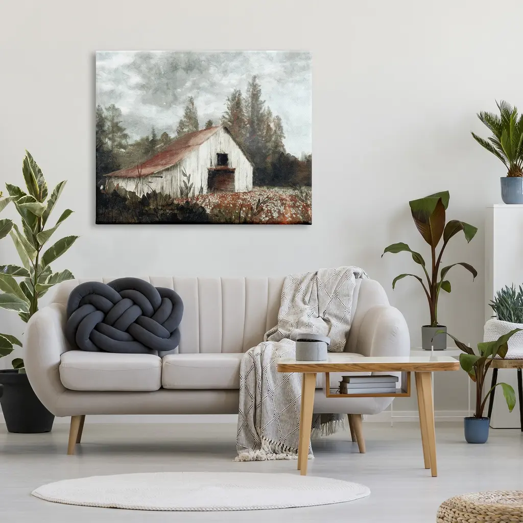We create our stretched canvas to the highest standards. Using only the highest quality inks and canvas on Mimaki printers, we hand-cut and stretch each piece over a 1.5-inch thick wooden frame for hanging. As a result, the art comes ready to hang on the sturdy ledge with no installation required. Stupell Wall Art is made in the USA.Features: Dimensions: 20 x 1.5 x 16 InchesStretched Canvas Sizes Include Standard: 20 x 1.5 x 16 Large: 30 x 1.5 x 20 X-Large: 40 x 1.5 x 30 Oversized: 48 x 1.5 x 36Wall Art is Ready to Hang - No Installation or Hardware Needed. For Easy Set Up Lean or Layer Artwork on Shelf or Against Wall.Our stretched canvas is created with the highest standards. We use only the highest quality inks and canvas on our in house Mimaki printers, and then hand cut and stretch each piece over a 1.5 inch thick wooden frame for hanging. Made In USA.Artwork Relates To: Grass, Countryside, Rural, Shelter, Barn, FieldDesign by Nina Blue