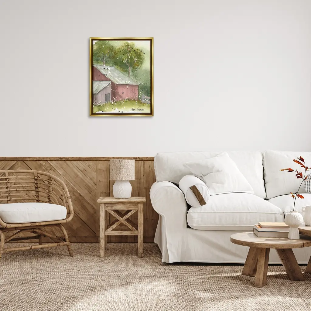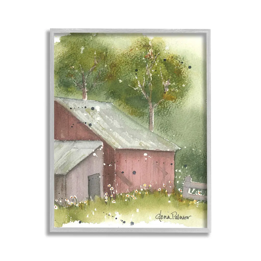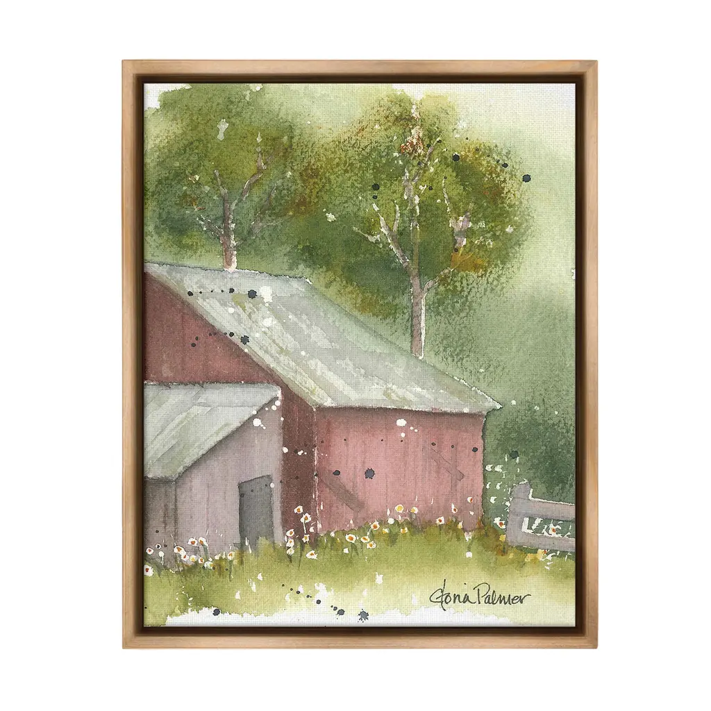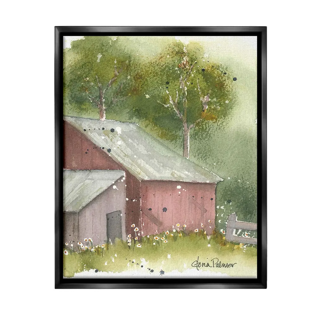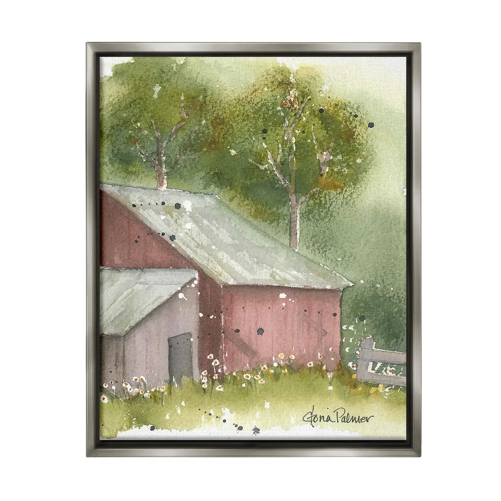 Elevate your home or office to the next level with Stupell Framed Floating Canvas Wall Art. Our premium hand-stretched canvas is mounted securely into a sturdy lightweight frame. The museum-style gap between the wrapped canvas and the box frame gives the illusion of floating artwork. Stupell Wall Art is made in the USA.Features: Dimensions: 17 x 1.7 x 21 Frame, 16 x 1.5 x 20 Canvas ArtFloating Frame Canvas Products are available in sizes 17"x21" and 25"x31". All Floating Frame Canvas Products have a 1.7" Depth.Wall Art is Ready to Hang with Hardware Free Hanging. No Installation required. For Easy Set Up Lean or Layer Artwork on Shelf or Against Wall. Artwork is Permently Fixed into the Frame.Our elevated 1.7" Thick Floating Frame is the perfect complement to our canvas style Wall Art. We use only the highest quality inks in house with industry leading printing solutions. Canvas is hand stretched over a durable wood foundation and then mounted securly into a Modern Box Frame. Made in the USA.Artwork Relates To: Nature, Countryside, Painting, Rural, Architecture, Barn, Building, Farm, House, Cottage, Spring, Flower, FloralDesign by Gloria Palmer