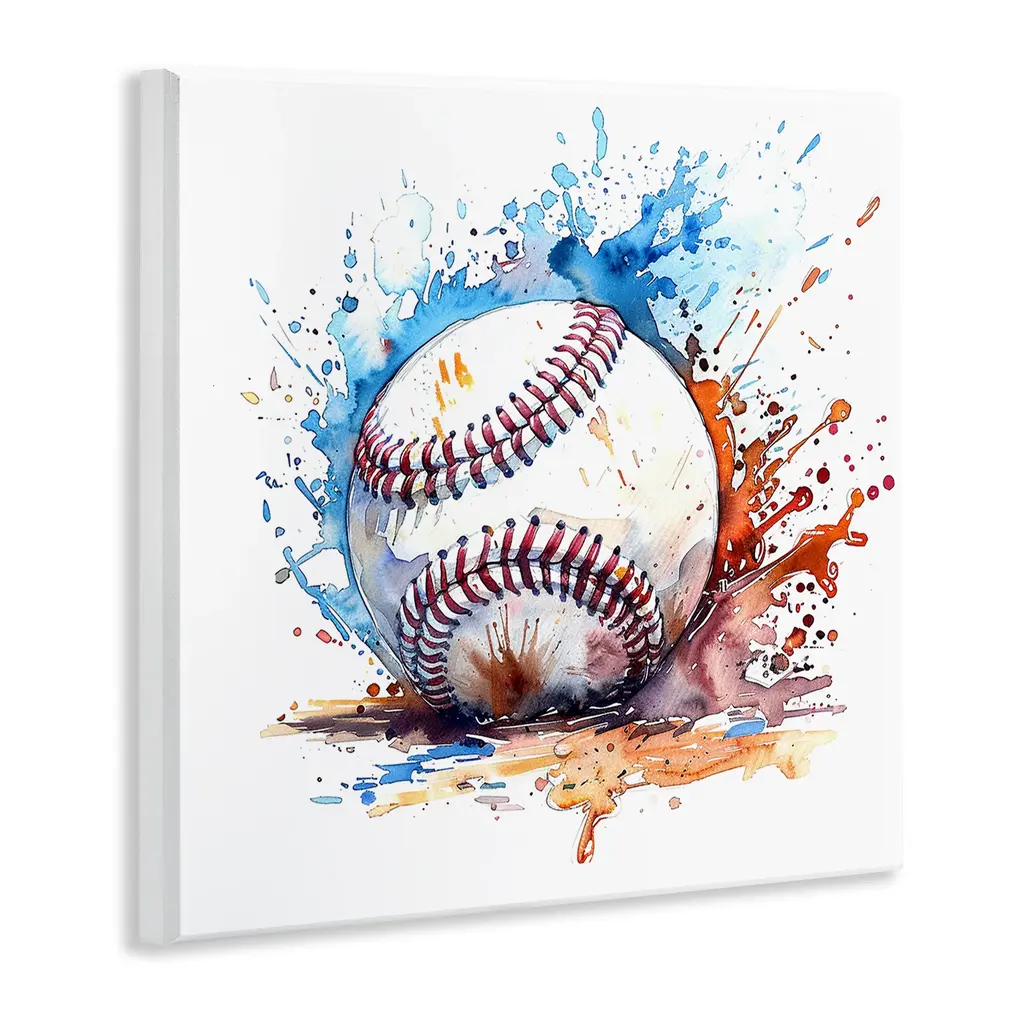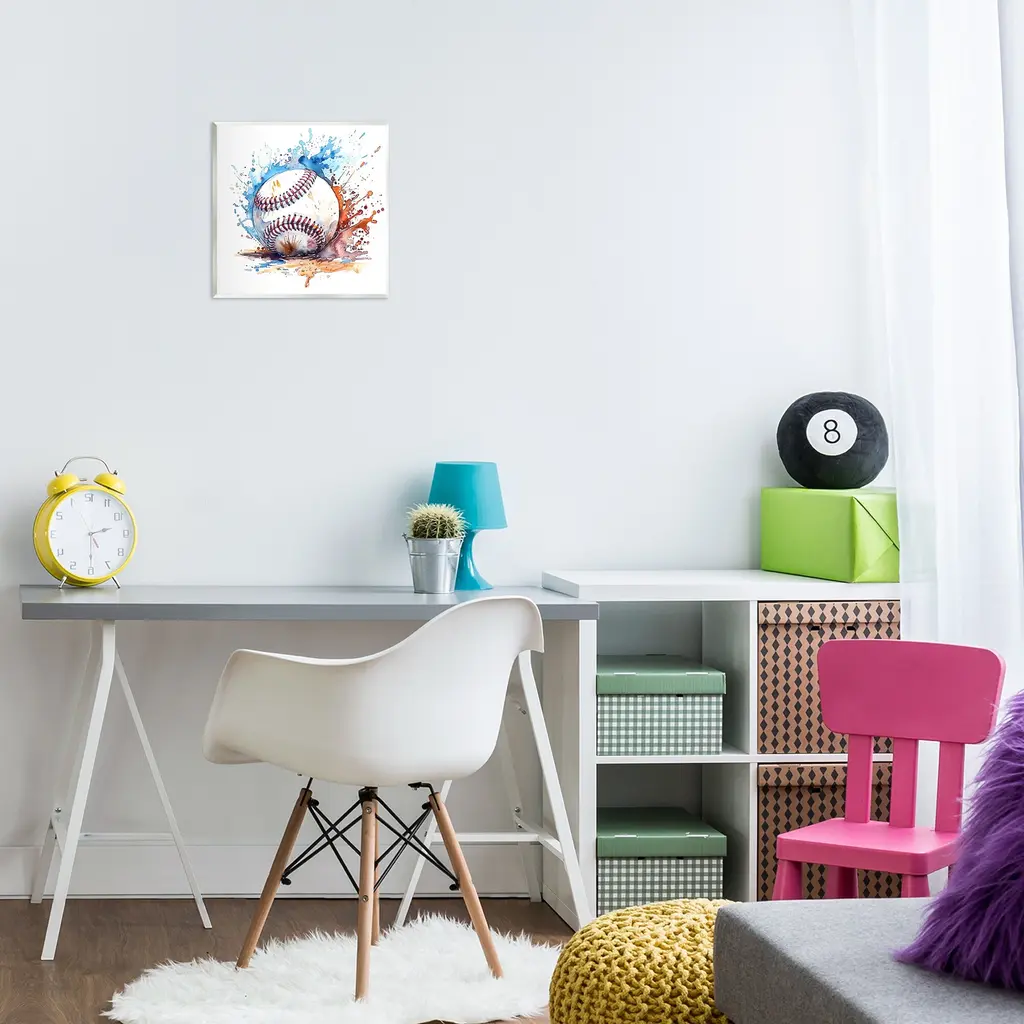 Our wall plaques start as high-quality lithograph prints mounted on durable 0.5-inch thick MDF wood. Each piece is hand finished and comes with a fresh layer of white foil on the sides to give it a crisp, clean look. Plaques arrive ready to hang without installation and come with removable plastic corners to keep them from damage in transit. Stupell Wall Art is made in the USA.Features: Dimensions: 12 x 0.5 x 12 InchesWall Art is Ready to Hang with Hardware Free Hanging. No installation required. For Easy Set Up Lean or Layer Artwork on Shelf or Against Wall.All of our wall plaques start off as high quality lithograph prints that are then mounted on durable 0.5 inch thick MDF wood. Each piece is hand finished and comes with a fresh layer of foil on the sides to give it a crisp clean look. Made In USA.Artwork Relates To: Sport, Ball, Modern, Abstract, Splash, BaseballDesign by LSR Design Studio