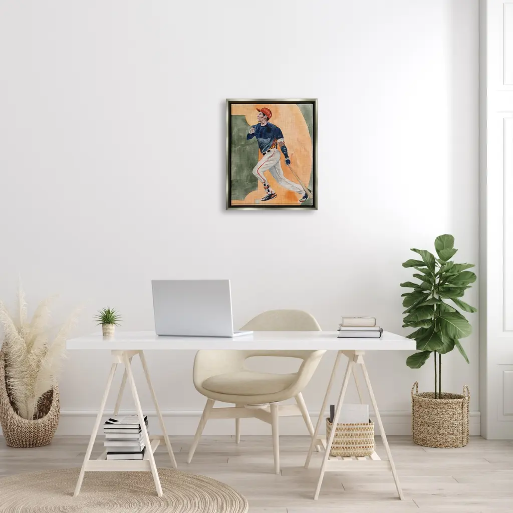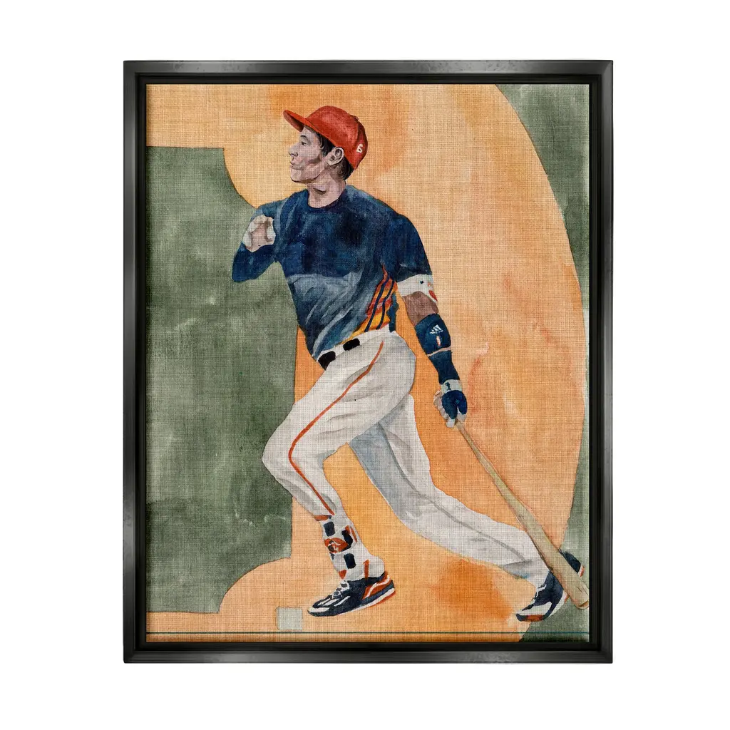 Elevate your home or office to the next level with Stupell Framed Floating Canvas Wall Art. Our premium hand-stretched canvas is mounted securely into a sturdy lightweight frame. The museum-style gap between the wrapped canvas and the box frame gives the illusion of floating artwork. Stupell Wall Art is made in the USA.Features: Dimensions: 17 x 1.7 x 21 Frame, 16 x 1.5 x 20 Canvas ArtFloating Frame Sizes Include Standard: 17 x 1.7 x 21 Oversized: 25 x 1.7 x 31Wall Art is Ready to Hang - No Installation or Hardware Needed. For Easy Set Up Lean or Layer Artwork on Shelf or Against Wall.Our elevated 1.7" Thick Floating Frame is the perfect complement to our canvas style Wall Art. We use only the highest quality inks in house with industry leading printing solutions. Canvas is hand stretched over a durable wood foundation and then mounted securly into a Modern Box Frame. Made in the USA.Artwork Relates To: Sport, Athlete, Ballplayer, Baseball, Male, Man, Playing Baseball, Baseball BatDesign by Melissa Wang