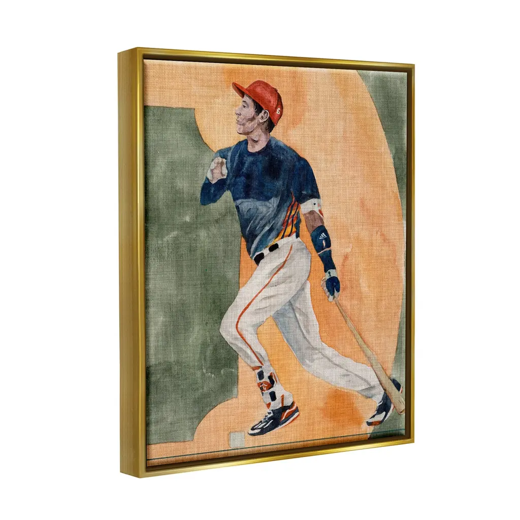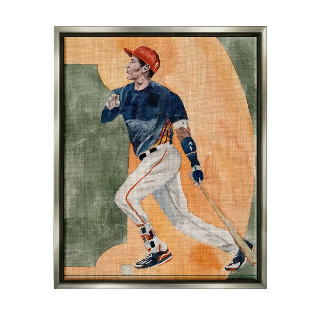 Elevate your home or office to the next level with Stupell Framed Floating Canvas Wall Art. Our premium hand-stretched canvas is mounted securely into a sturdy lightweight frame. The museum-style gap between the wrapped canvas and the box frame gives the illusion of floating artwork. Stupell Wall Art is made in the USA.Features: Dimensions: 17 x 1.7 x 21 Frame, 16 x 1.5 x 20 Canvas ArtFloating Frame Sizes Include Standard: 17 x 1.7 x 21 Oversized: 25 x 1.7 x 31Wall Art is Ready to Hang - No Installation or Hardware Needed. For Easy Set Up Lean or Layer Artwork on Shelf or Against Wall.Our elevated 1.7" Thick Floating Frame is the perfect complement to our canvas style Wall Art. We use only the highest quality inks in house with industry leading printing solutions. Canvas is hand stretched over a durable wood foundation and then mounted securly into a Modern Box Frame. Made in the USA.Artwork Relates To: Sport, Athlete, Ballplayer, Baseball, Male, Man, Playing Baseball, Baseball BatDesign by Melissa Wang