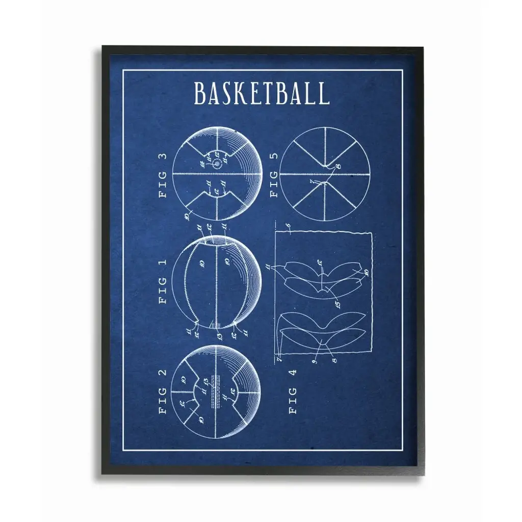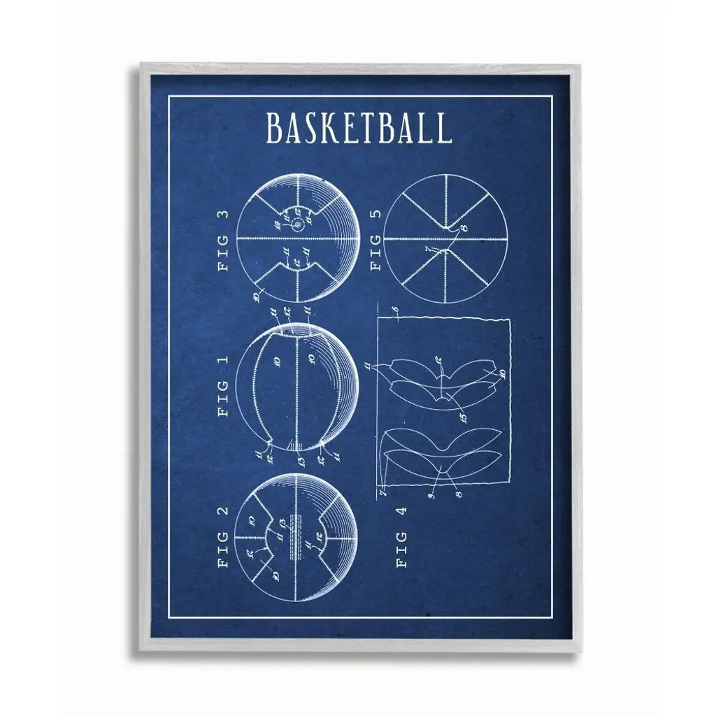 Stupell Basketball Blueprint Vintage Sports Design Framed Wall Art, Design By Artist Daphne Polselli - 16 X 20 - Grey