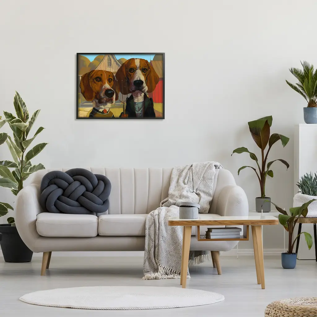 Stupell Basset Hound American Gothic Farm Pet Parody Framed Wall Art - Brown - 24 X 30 - Black