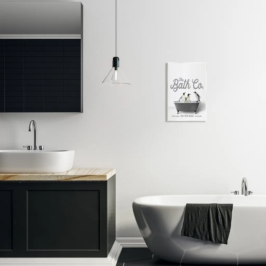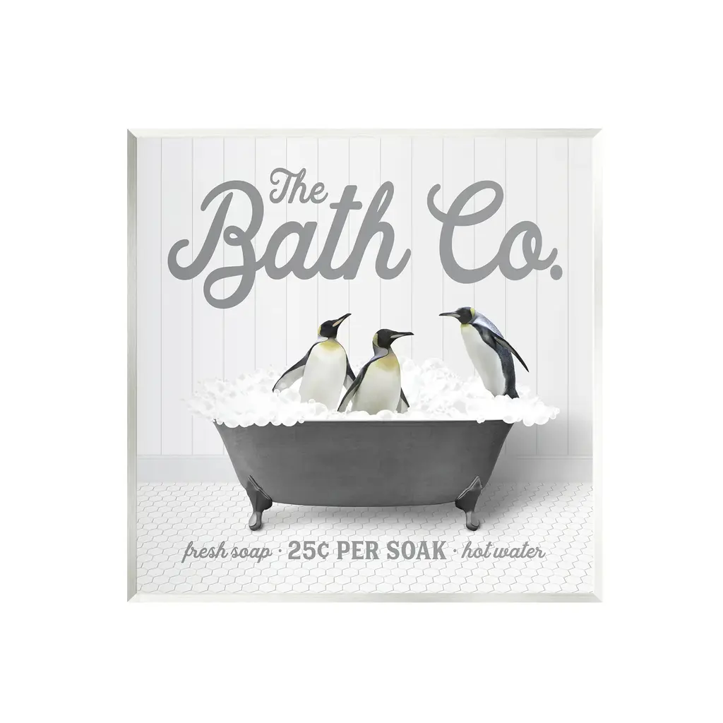 Our wall plaques start as high-quality lithograph prints mounted on durable 0.5-inch thick MDF wood. Each piece is hand finished and comes with a fresh layer of white foil on the sides to give it a crisp, clean look. Plaques arrive ready to hang without installation and come with removable plastic corners to keep them from damage in transit. Stupell Wall Art is made in the USA.Features: Dimensions: 10 x 0.5 x 15 InchesWall Plaque Sizes Include Standard: 10 x 0.5 x 15 Oversized: 13 x 0.5 x 19Wall Art is Ready to Hang with Hardware Free Hanging. No installation required. For Easy Set Up Lean or Layer Artwork on Shelf or Against Wall.All of our wall plaques start off as high quality lithograph prints that are then mounted on durable 0.5 inch thick MDF wood. Each piece is hand finished and comes with a fresh layer of foil on the sides to give it a crisp clean look. Made In USA.Artwork Relates To: Animal, Mammal, Wildlife, Bathroom, Rustic, Bathtub, The Bath Co, PenguinDesign by Lettered and Lined