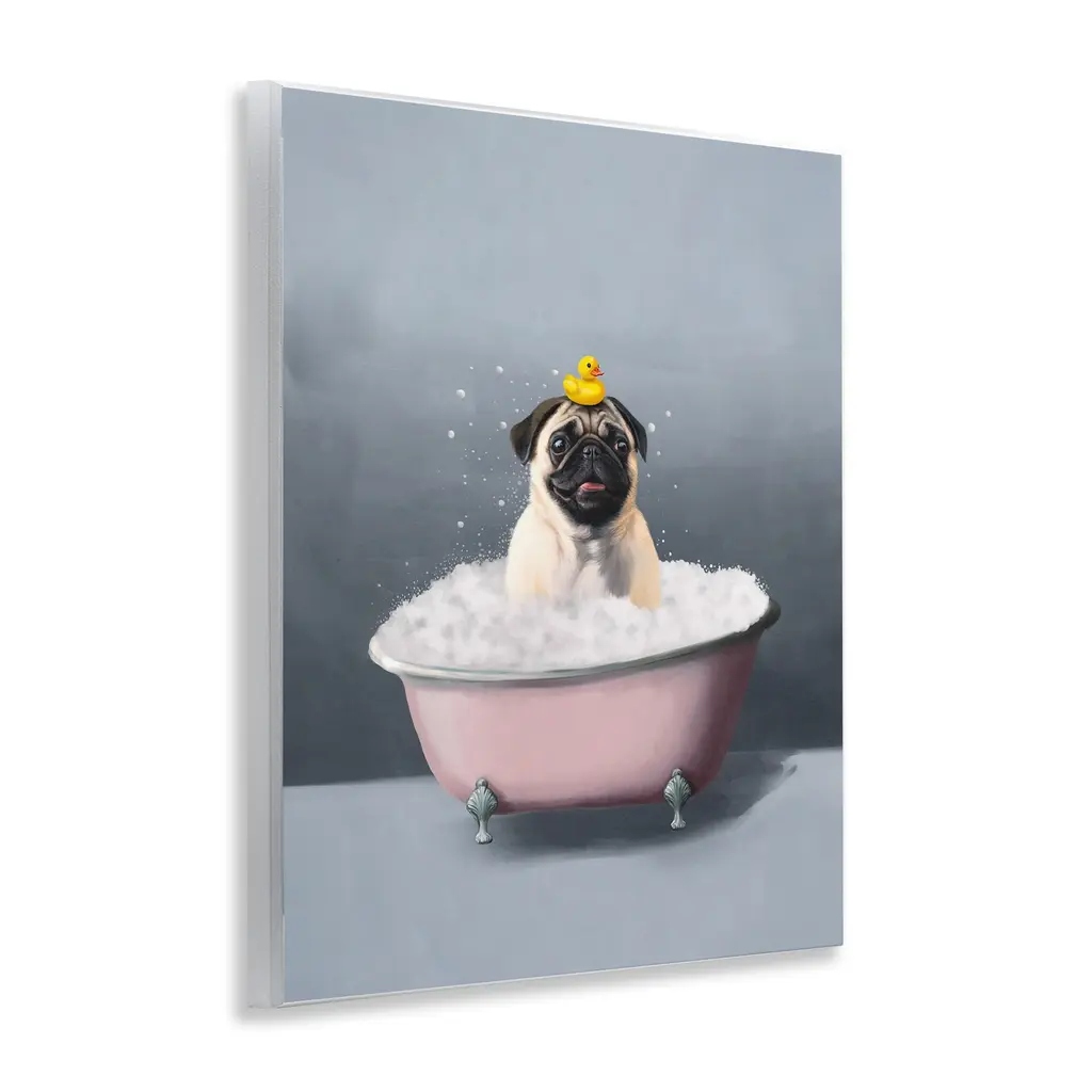 Stupell Bathing Pug With Rubber Duck Wall Plaque Art Design By Svetlana Aleynikova - 11 X 14
