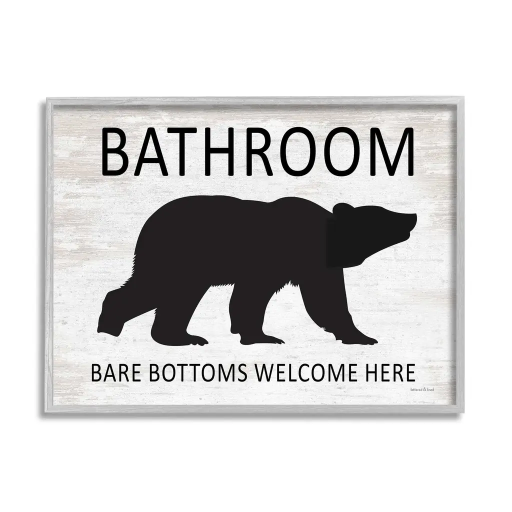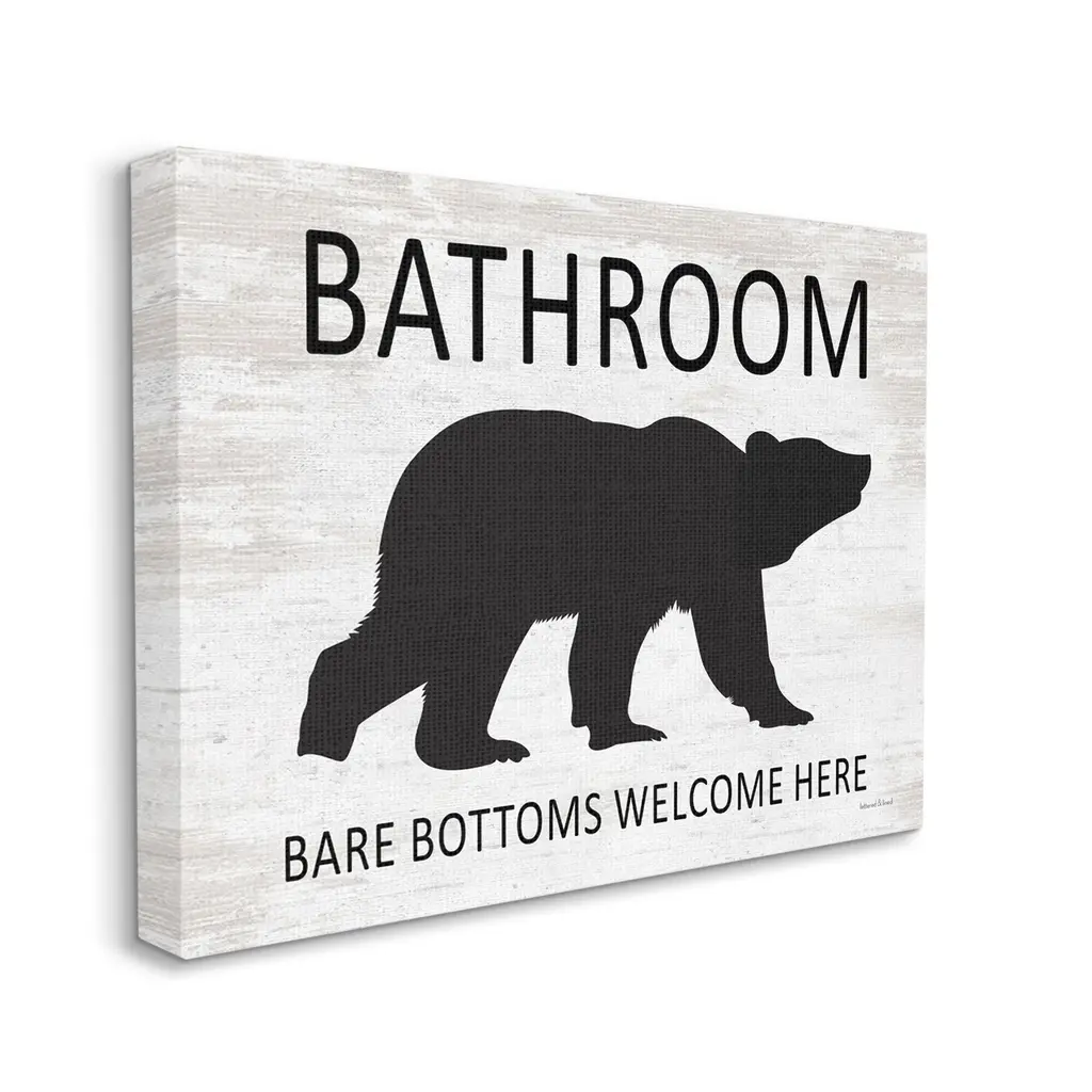 Stupell Bathroom Bare Bottoms Welcome Here Funny Rustic Bear Canvas Wall Art - White - 20 X 16