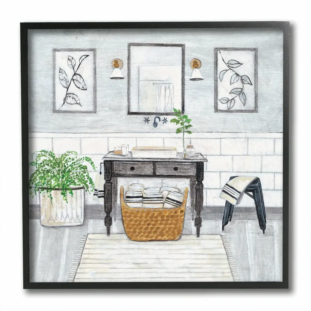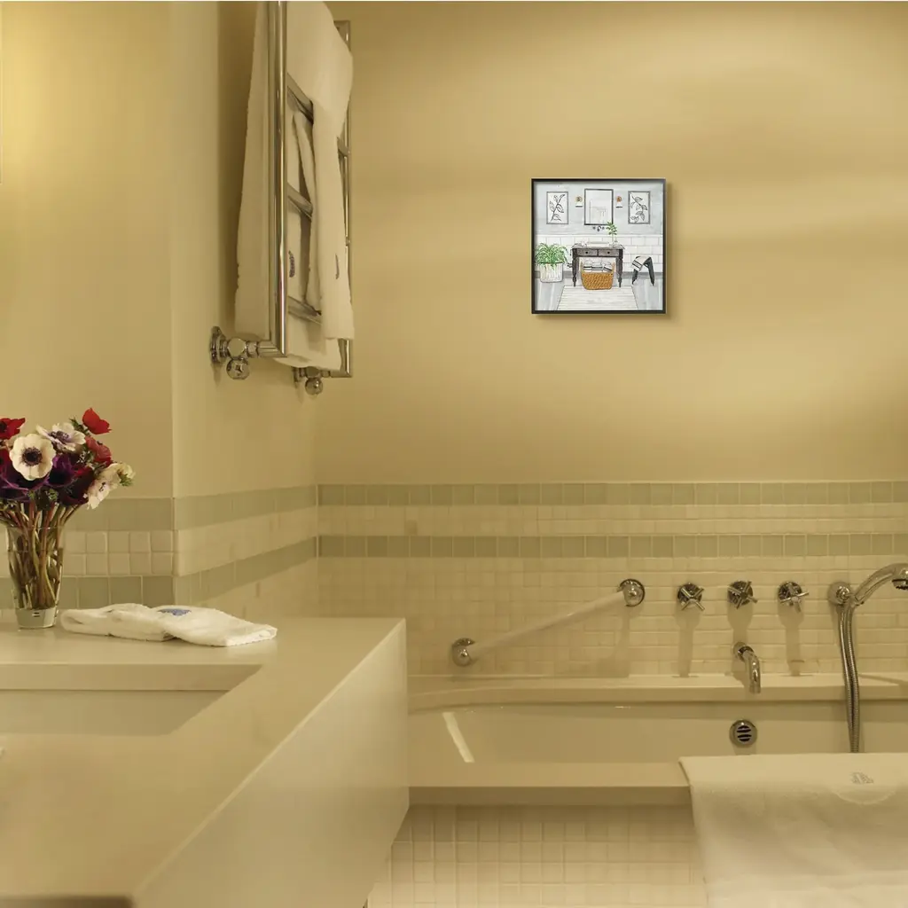Stupell Bathroom Farmhouse Style Neutral Grey Drawing, 12x12, Framed Wall Art, Design By Yellow Café - 12 X 12 - 12 X 12 - Wood - Black