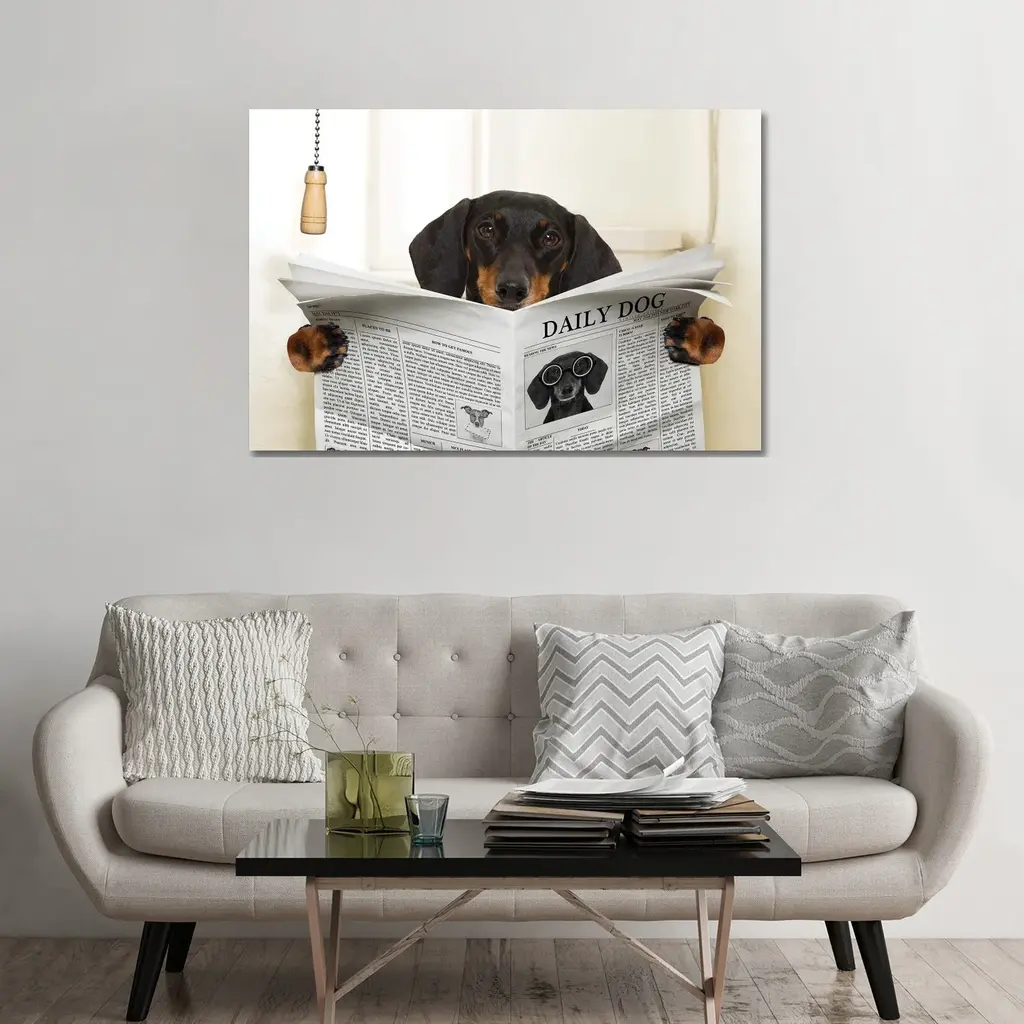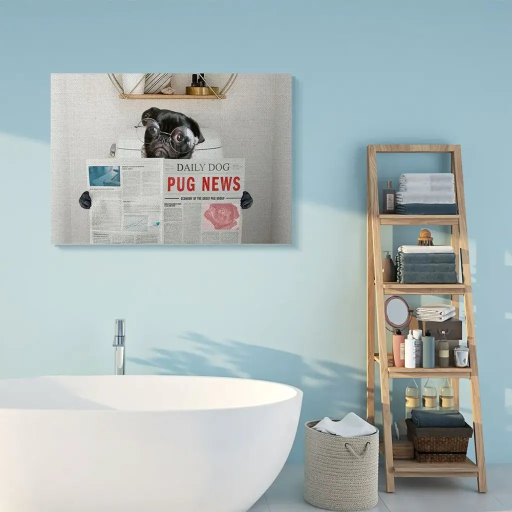 Stupell Bathroom Pug Daily Toilet Briefing Dog Humor Canvas Wall Art - Multi-Color - 36 X 48