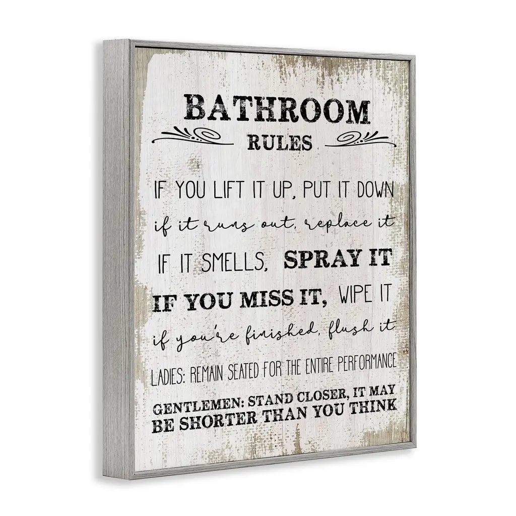 Stupell Bathroom Rules Funny Word Wood Textured Design,11x14, Design By Artist Daphne Polselli - 24 X 30 - Grey
