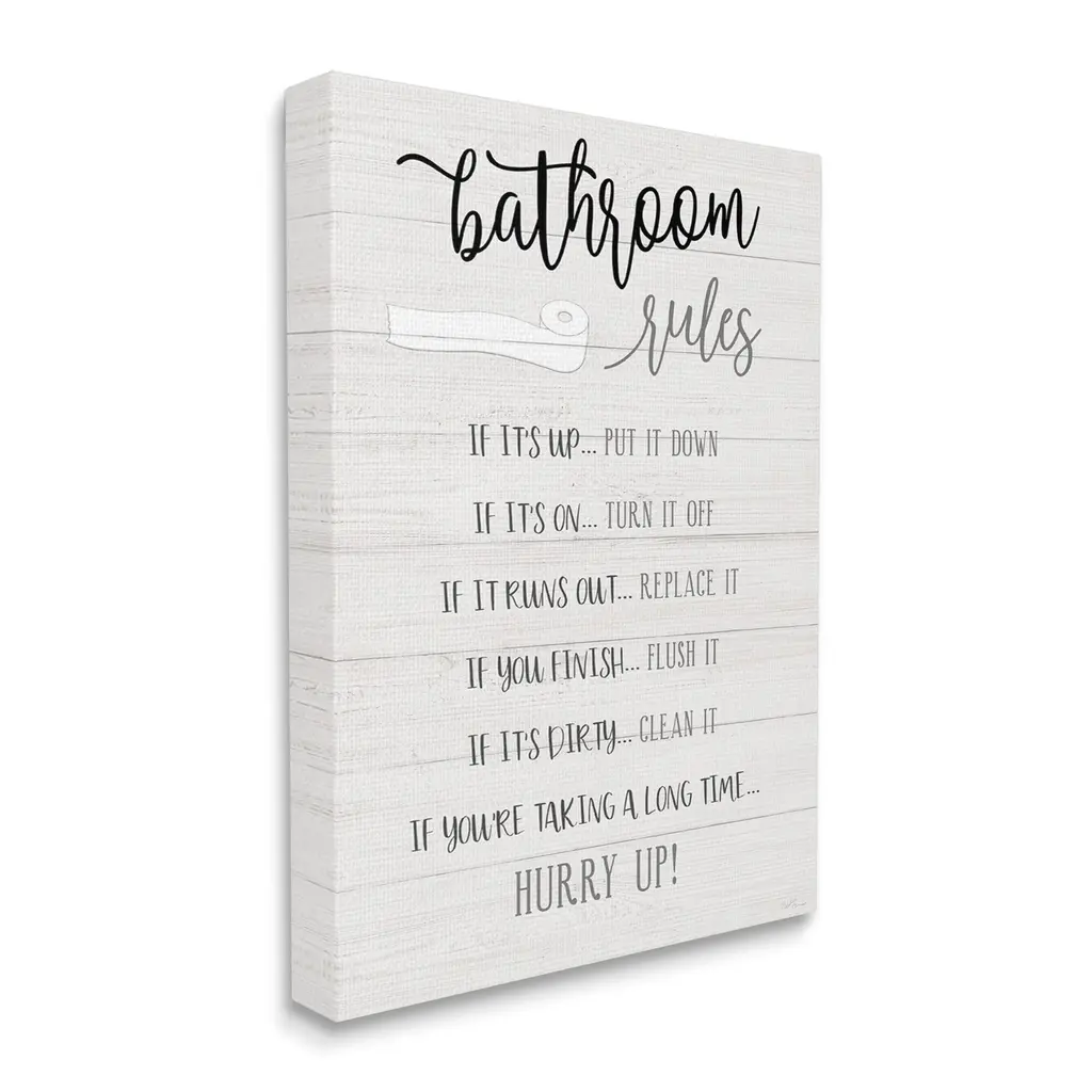 Stupell Bathroom Rules Toilet Paper Sign Country Plank Pattern Canvas Wall Art - Black - 16 X 20