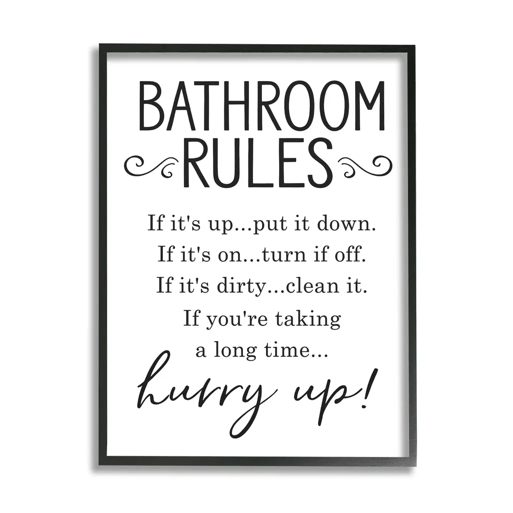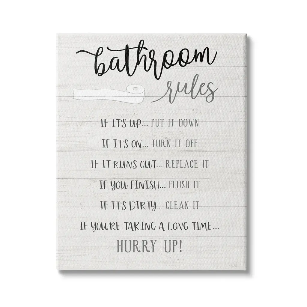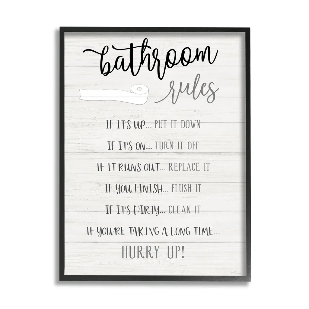 Stupell Bathroom Rules Toilet Paper Sign Country Plank Pattern Framed Wall Art - Black - 11 X 14 - Grey