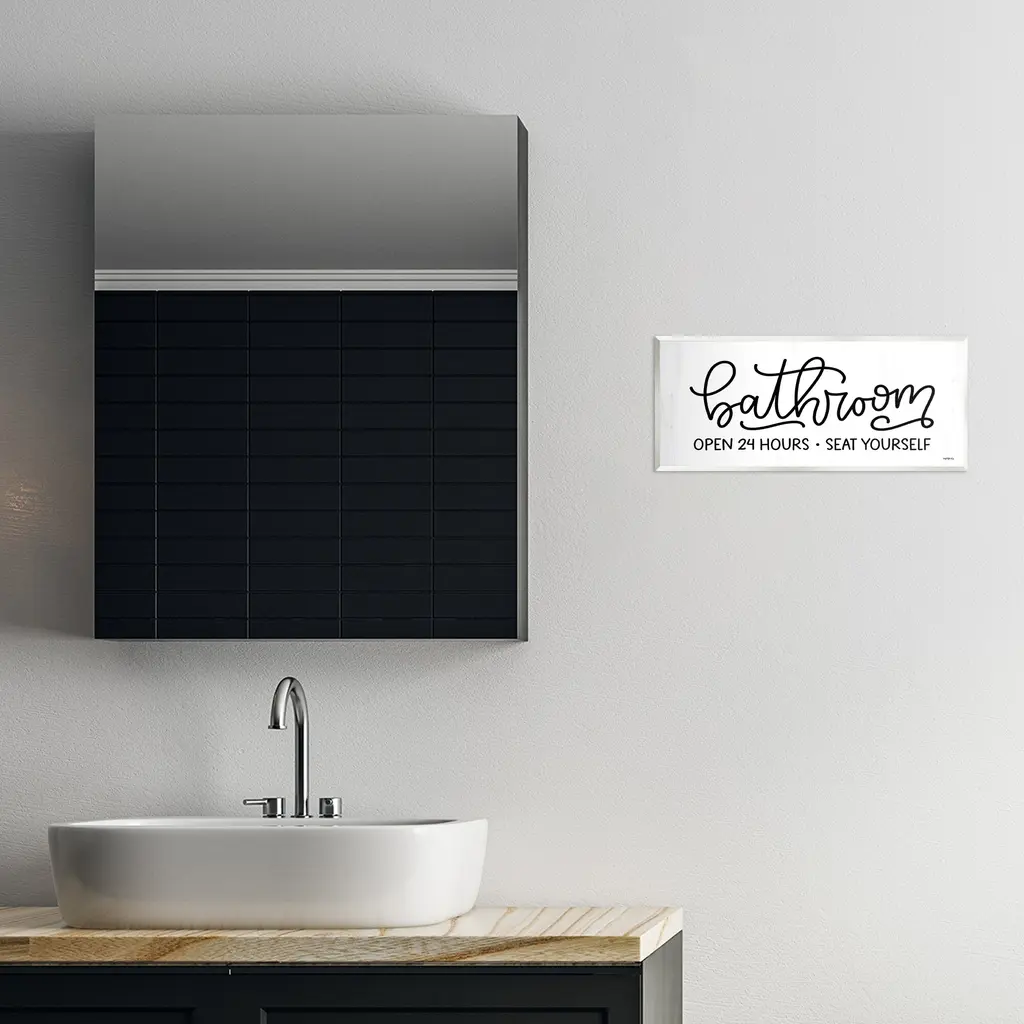 Our wall plaques start as high-quality lithograph prints mounted on durable 0.5-inch thick MDF wood. Each piece is hand finished and comes with a fresh layer of white foil on the sides to give it a crisp, clean look. Plaques arrive ready to hang without installation and come with removable plastic corners to keep them from damage in transit. Stupell Wall Art is made in the USA.Features: Dimensions: 17 x 0.5 x 7 InchesWall Art is Ready to Hang with Hardware Free Hanging. No installation required. For Easy Set Up Lean or Layer Artwork on Shelf or Against Wall.All of our wall plaques start off as high quality lithograph prints that are then mounted on durable 0.5 inch thick MDF wood. Each piece is hand finished and comes with a fresh layer of foil on the sides to give it a crisp clean look. Made In USA.Artwork Relates To: Bathroom, Phrase, Minimal, HumorDesign by Imperfect Dust