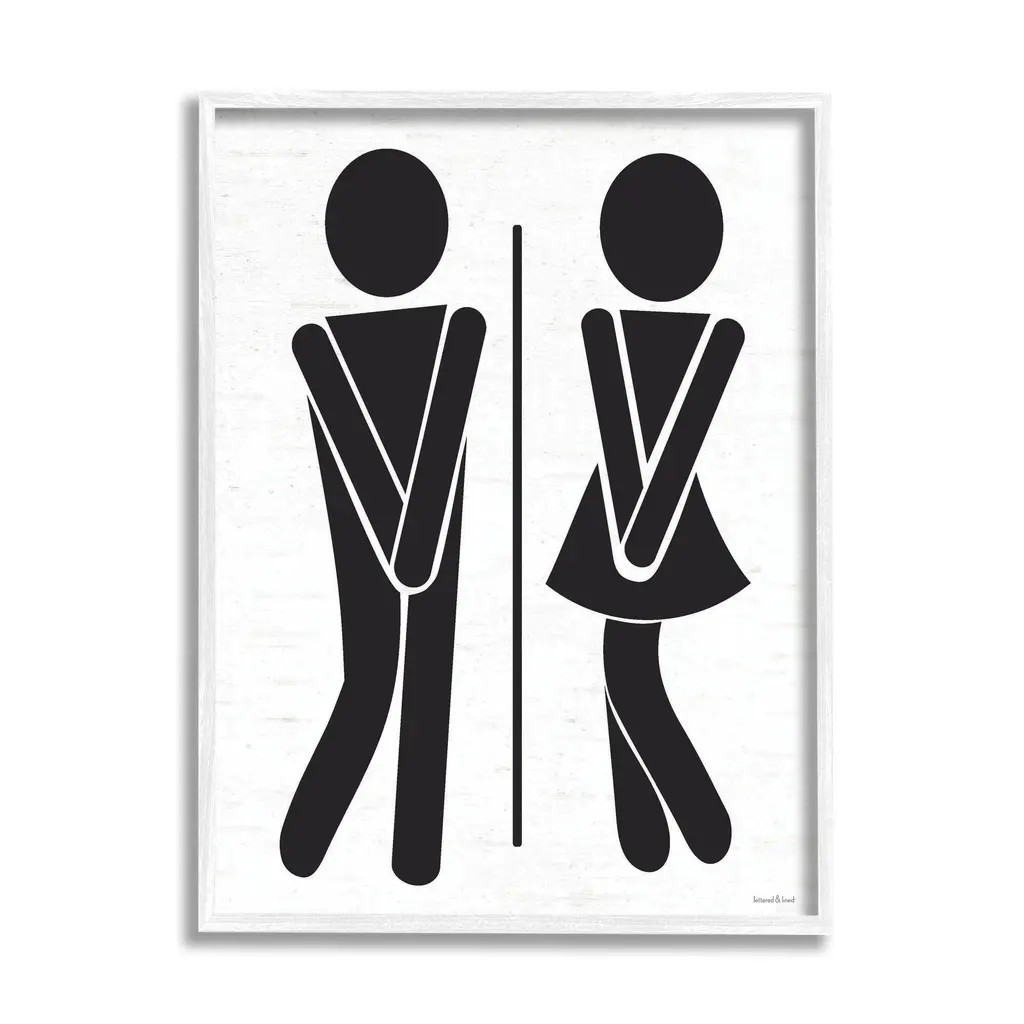 Stupell Bathroom Sign Genders Got To Go Stance Figures Framed Wall Art - Black - 11 X 14 - White