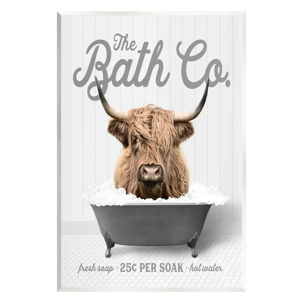 Stupell Bathtub Highland Cow Wall Plaque Art Design By Lettered And Lined - 13 X 19