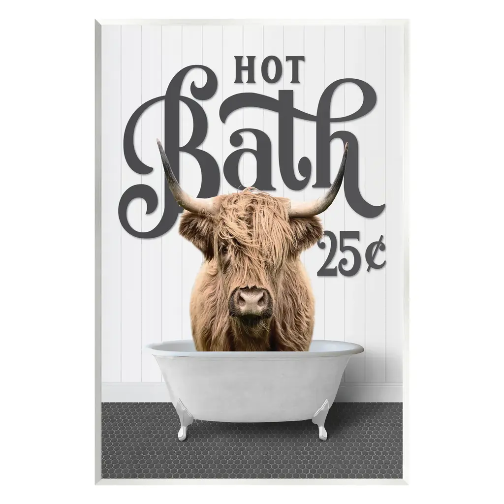 Our wall plaques start as high-quality lithograph prints mounted on durable 0.5-inch thick MDF wood. Each piece is hand finished and comes with a fresh layer of white foil on the sides to give it a crisp, clean look. Plaques arrive ready to hang without installation and come with removable plastic corners to keep them from damage in transit. Stupell Wall Art is made in the USA.Features: Dimensions: 10 x 0.5 x 15 InchesWall Plaque Sizes Include Standard: 10 x 0.5 x 15 Oversized: 13 x 0.5 x 19Wall Art is Ready to Hang with Hardware Free Hanging. No installation required. For Easy Set Up Lean or Layer Artwork on Shelf or Against Wall.All of our wall plaques start off as high quality lithograph prints that are then mounted on durable 0.5 inch thick MDF wood. Each piece is hand finished and comes with a fresh layer of foil on the sides to give it a crisp clean look. Made In USA.Artwork Relates To: Animal, Mammal, Wildlife, Bathroom, Rustic, Bathtub, The Bath Co, Design by Lettered and Lined