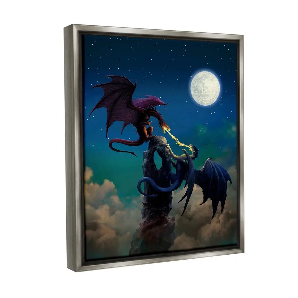 Stupell Battling Dragons At Night Framed Floater Canvas Wall Art Design By Ciruelo - 17 X 21 - Grey