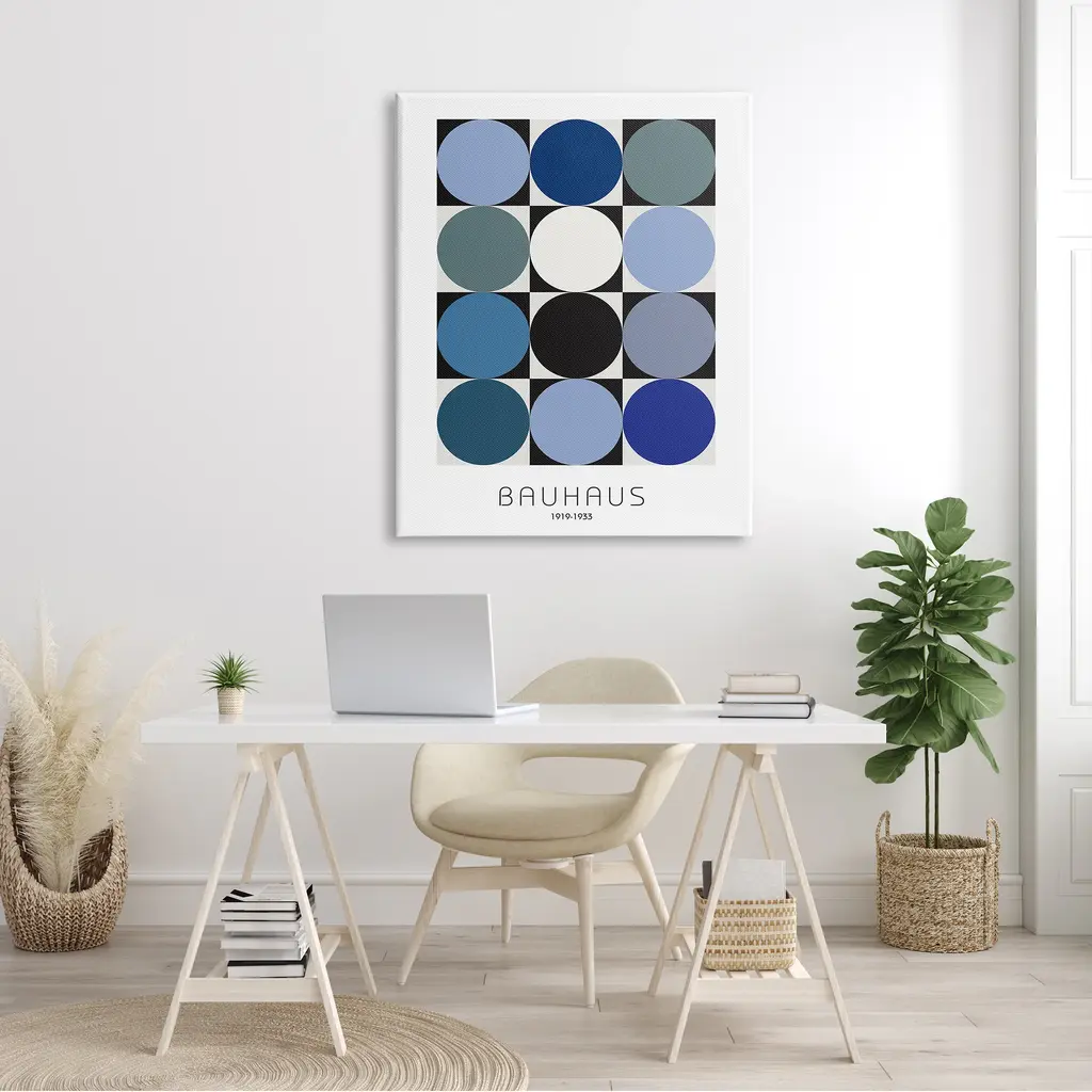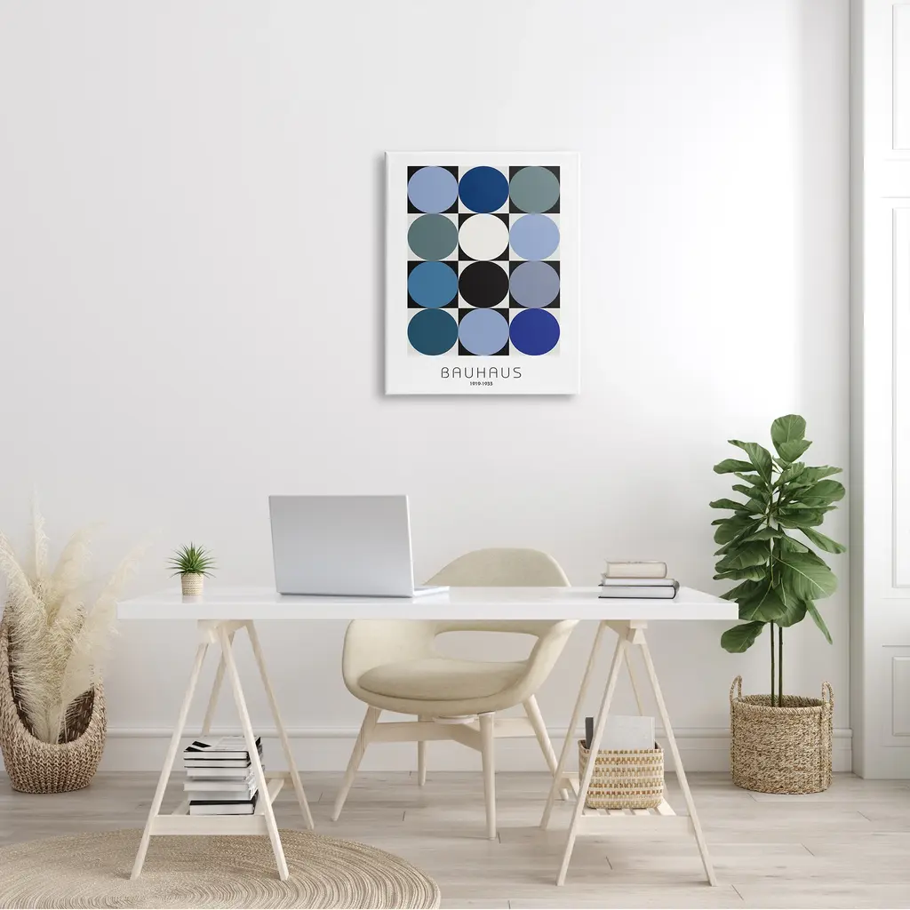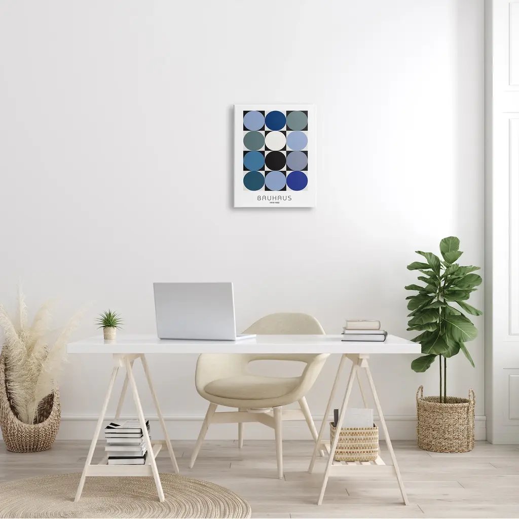Stupell Bauhaus Geometrical Circle Square Abstract Composition Blue Black Canvas Wall Art - 16 X 20