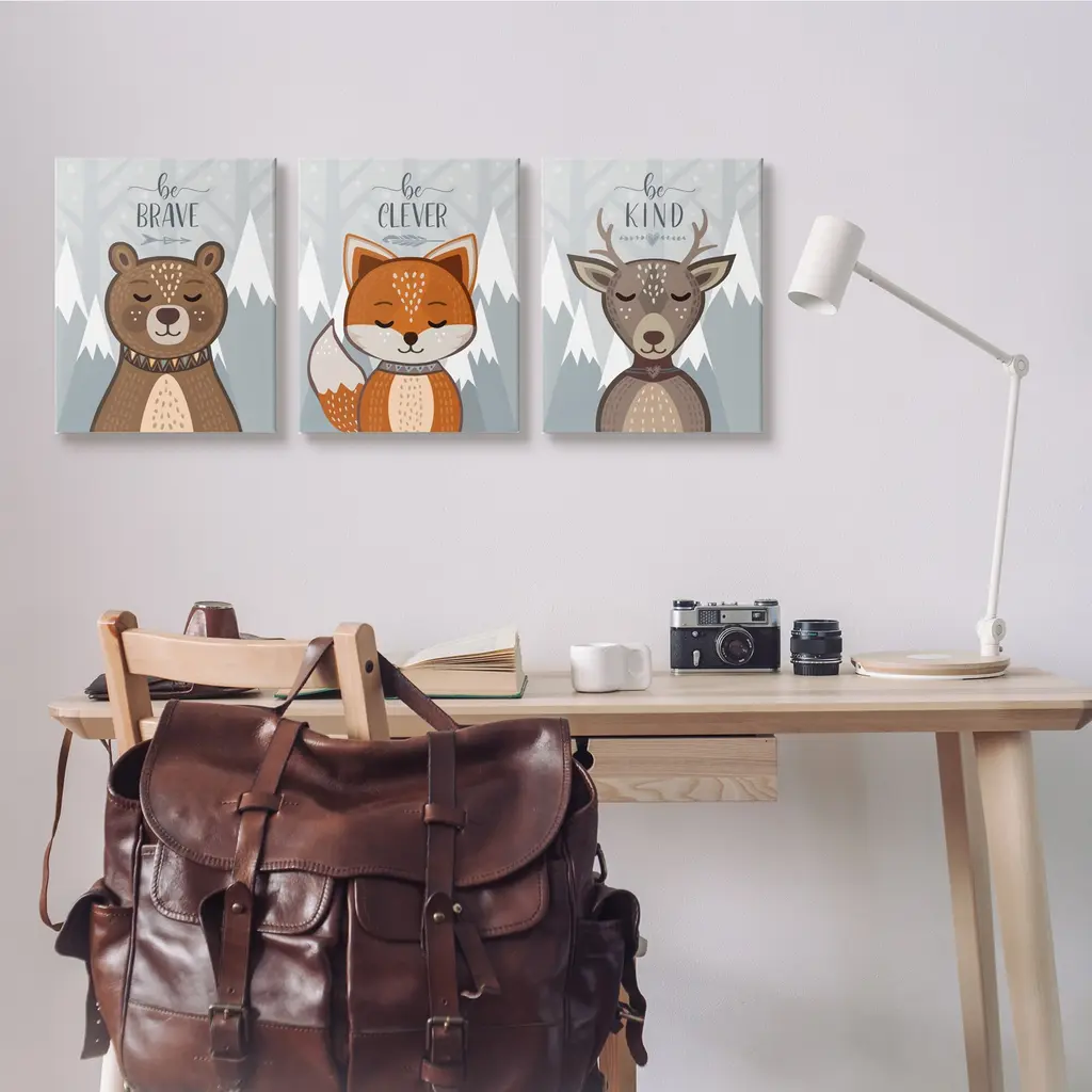 Stupell Be Kind Brave And Clever Phrases Forest Animal, 3Pc Multi Piece Canvas Wall Art Set - Multi-Color - 16 X 20