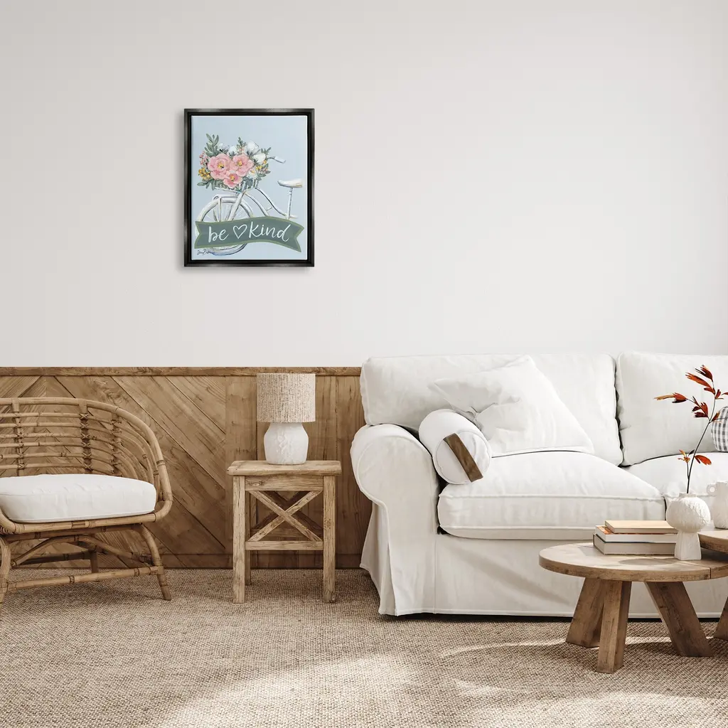 Stupell Be Kind Floral Bicycle Framed Floater Canvas Wall Art Design By Sara Baker - 17 X 21 - Black