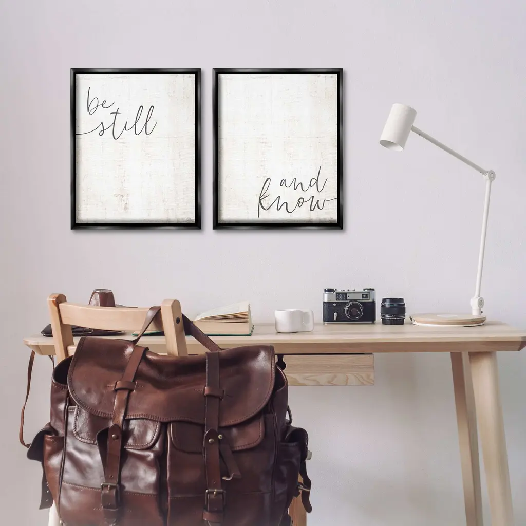 Elevate your home or office to the next level with Stupell Framed Floating Canvas Wall Art. Our premium hand-stretched canvas is mounted securely into a sturdy lightweight frame. The museum-style gap between the wrapped canvas and the box frame gives the illusion of floating artwork. Stupell Wall Art is made in the USA.Features: Dimensions: 2 Piece Set, Each Frame is 17 x 1.7 x 21Two Piece Floater Framed Canvas are available as 17x21 or 25x31 Panels. All Floater Frame Products have a 1.7" Depth.Wall Art is Ready to Hang with Hardware Free Hanging. No Installation required. For Easy Set Up Lean or Layer Artwork on Shelf or Against Wall. Artwork is Permently Fixed into the Frame.Our elevated 1.7" Thick Floating Frame is the perfect complement to our canvas style Wall Art. We use only the highest quality inks in house with industry leading printing solutions. Canvas is hand stretched over a durable wood foundation and then mounted securly into a Modern Box Frame. Made in the USA.Artwork Relates To: Phrase, Spiritual, Religious, Proverb, PrayerDesign by LUX + Me Designs