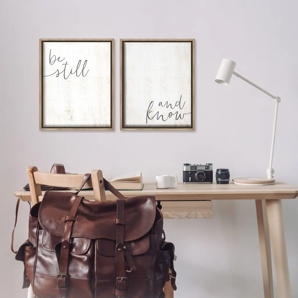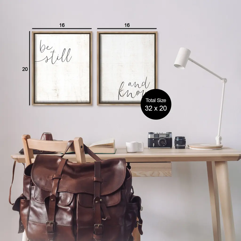 Elevate your home or office to the next level with Stupell Framed Floating Canvas Wall Art. Our premium hand-stretched canvas is mounted securely into a sturdy lightweight frame. The museum-style gap between the wrapped canvas and the box frame gives the illusion of floating artwork. Stupell Wall Art is made in the USA.Features: Dimensions: 2 Piece Set, Each Frame is 17 x 1.7 x 21Two Piece Floater Framed Canvas are available as 17x21 or 25x31 Panels. All Floater Frame Products have a 1.7" Depth.Wall Art is Ready to Hang with Hardware Free Hanging. No Installation required. For Easy Set Up Lean or Layer Artwork on Shelf or Against Wall. Artwork is Permently Fixed into the Frame.Our elevated 1.7" Thick Floating Frame is the perfect complement to our canvas style Wall Art. We use only the highest quality inks in house with industry leading printing solutions. Canvas is hand stretched over a durable wood foundation and then mounted securly into a Modern Box Frame. Made in the USA.Artwork Relates To: Phrase, Spiritual, Religious, Proverb, PrayerDesign by LUX + Me Designs