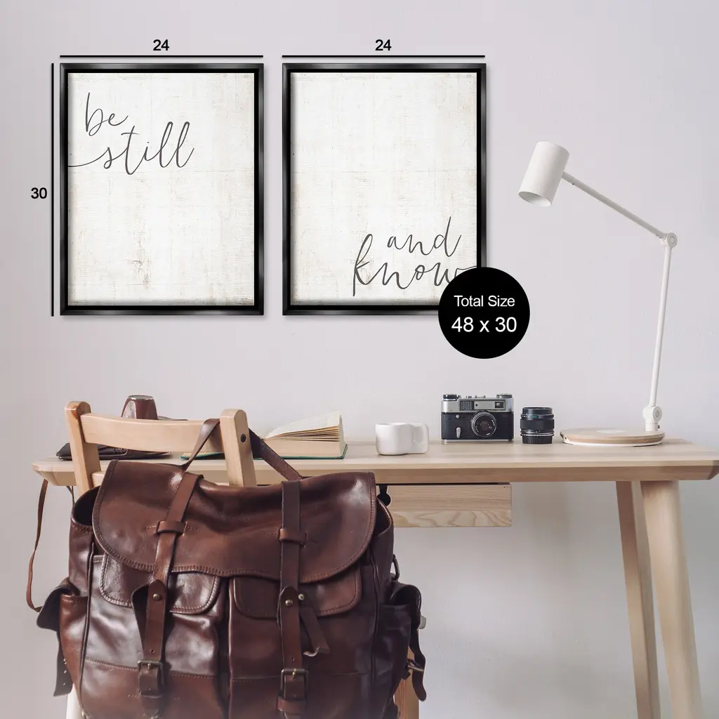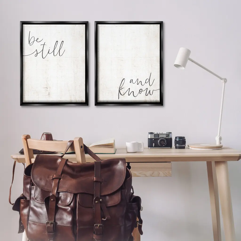 Stupell Be Still & Know Spiritual Calligraphy Framed Floater Canvas Wall Art Design By Lux + Me Designs (Set Of 2) - 25 X 31 - Black