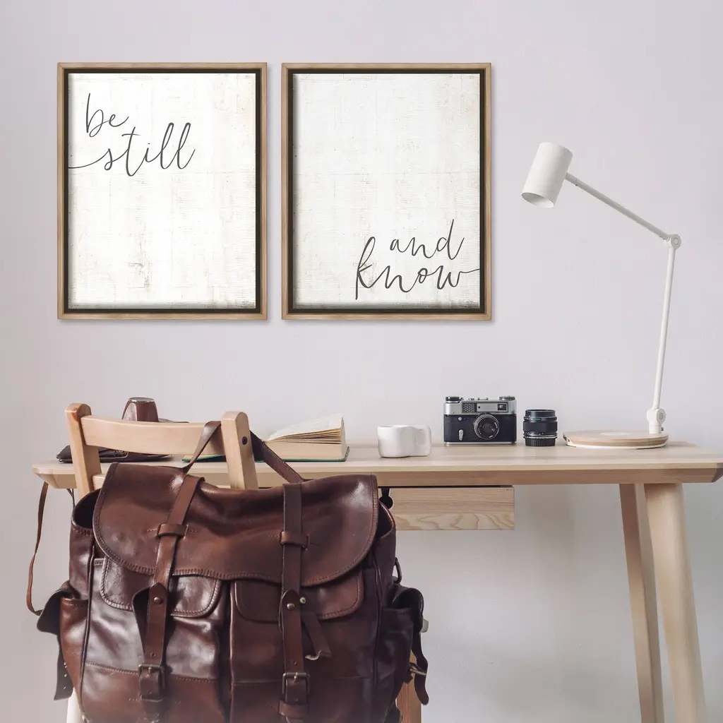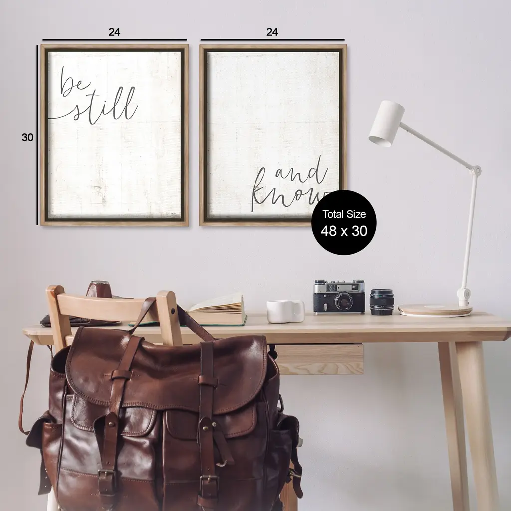 Stupell Be Still & Know Spiritual Calligraphy Framed Floater Canvas Wall Art Design By Lux + Me Designs (Set Of 2) - 25 X 31 - Brown