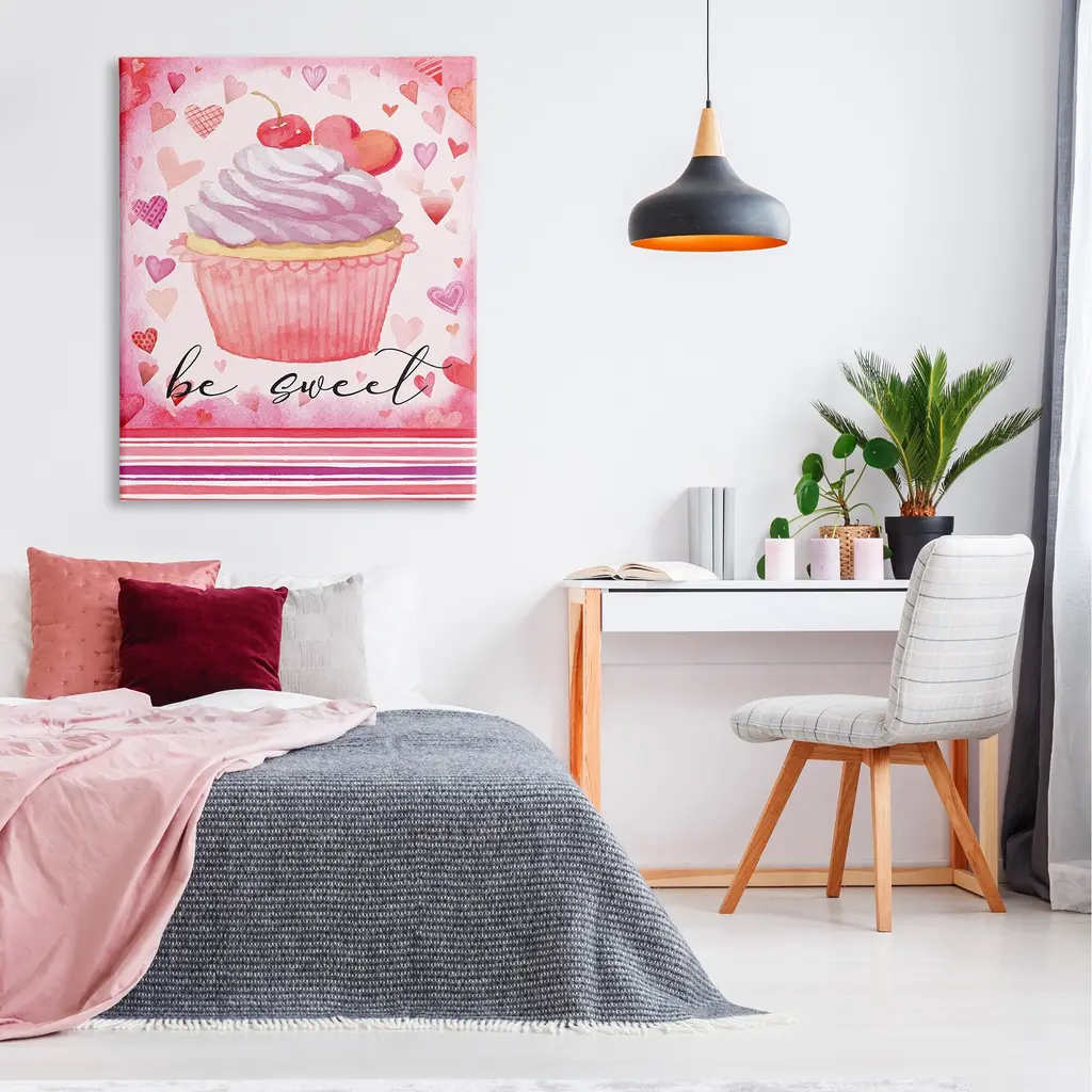Stupell Be Sweet Romantic Hearts Cupcake Canvas Wall Art By Nd Art - 36 X 48