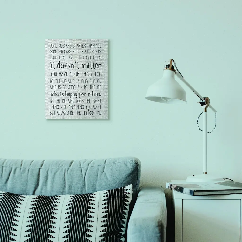 Stupell Be The Nice Kid Inspirational Family Wood Textured Word Design Canvas Wall Art - 16 X 20