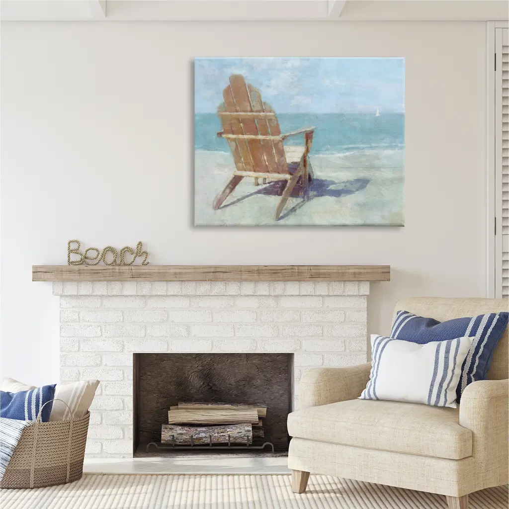 We create our stretched canvas to the highest standards. Using only the highest quality inks and canvas on Mimaki printers, we hand-cut and stretch each piece over a 1.5-inch thick wooden frame for hanging. As a result, the art comes ready to hang on the sturdy ledge with no installation required. Stupell Wall Art is made in the USA.Features: Dimensions: 20 x 1.5 x 16 InchesStretched Canvas Sizes Include Standard: 20 x 1.5 x 16 Large: 30 x 1.5 x 20 X-Large: 40 x 1.5 x 30 Oversized: 48 x 1.5 x 36Wall Art is Ready to Hang with Hardware Free Hanging. No installation required. For Easy Set Up Lean or Layer Artwork on Shelf or Against Wall.Our stretched canvas is created with the highest standards. We use only the highest quality inks and canvas on our in house Mimaki printers, and then hand cut and stretch each piece over a 1.5 inch thick wooden frame for hanging. Made In USA.Artwork Relates To: Chair, Painting, Armchair, Nature, Outdoors, Sea, Water, Beach, ShoreDesign by Noah Bay