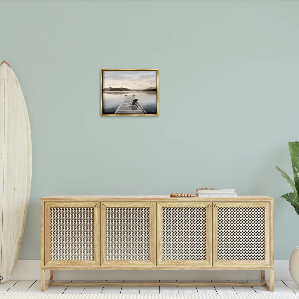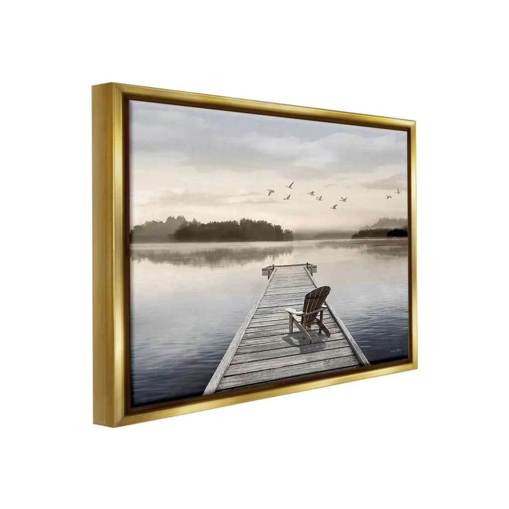 Elevate your home or office to the next level with Stupell Framed Floating Canvas Wall Art. Our premium hand-stretched canvas is mounted securely into a sturdy lightweight frame. The museum-style gap between the wrapped canvas and the box frame gives the illusion of floating artwork. Stupell Wall Art is made in the USA.Features: Dimensions: 21 x 1.7 x 17 Frame, 20 x 1.5 x 16 Canvas ArtFloating Frame Canvas Products are available in sizes 21"x17" and 31"x25". All Floating Frame Canvas Products have a 1.7" Depth.Wall Art is Ready to Hang with Hardware Free Hanging. No Installation required. For Easy Set Up Lean or Layer Artwork on Shelf or Against Wall. Artwork is Permently Fixed into the Frame.Our elevated 1.7" Thick Floating Frame is the perfect complement to our canvas style Wall Art. We use only the highest quality inks in house with industry leading printing solutions. Canvas is hand stretched over a durable wood foundation and then mounted securly into a Modern Box Frame. Made in the USA.Artwork Relates To: Nature, Scenery, Water, Waterfront, Horizon, Sky, Lakefront, Animal, Bird, Beach Chair, Dock, Lake, LandscapeDesign by Amber Sterling