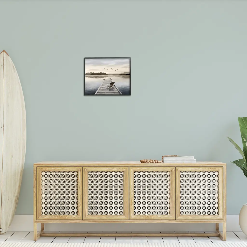 Add dimension to any room with our textured Framed Giclee Artwork. Our framed artwork is securely mounted into a 1.5-inch thick wood grain frame and ready to hang. Frames are available in three alluring styles: black, gray farmhouse and white. In addition, you should check out our oversized options if you want a statement piece. Stupell Wall Art is made in the USA.Features: Dimensions: 14 x 1.5 x 11 FramedFramed Giclee Products are available in the sizes 14"x11", 20"x16" or 30"x24". All Framed Giclee Products have a 1.5" Depth. Wall Art is Ready to Hang with Hardware Free Hanging. No installation required. For Easy Set Up Lean or Layer Artwork on Shelf or Against Wall.Our giclée prints are carefully mounted on a durable MDF backing, and then perfectly finished in a 1.5 inch thick woodgrain frame. Mounted frame colors include black, gray farmhouse and white. Made In USA.Artwork Relates To: Nature, Scenery, Water, Waterfront, Horizon, Sky, Lakefront, Animal, Bird, Beach Chair, Dock, Lake, LandscapeDesign by Amber Sterling