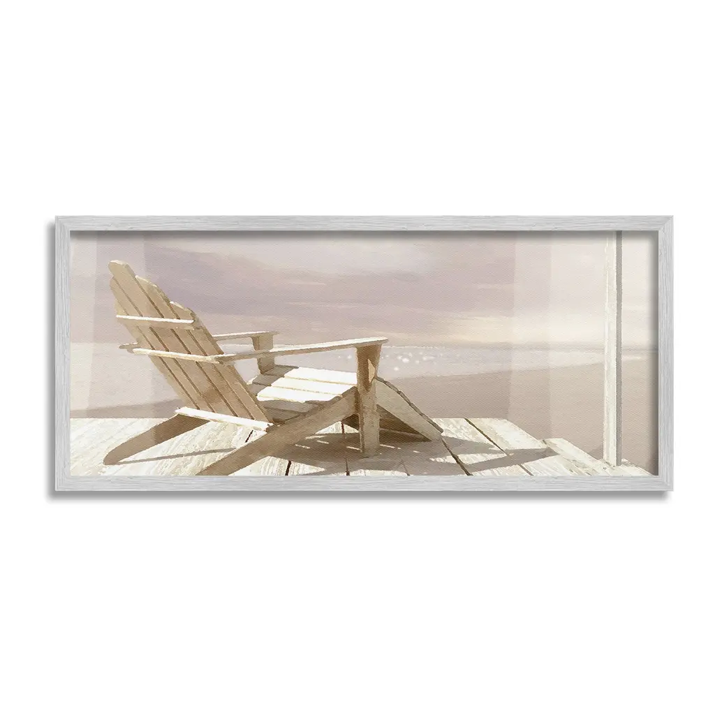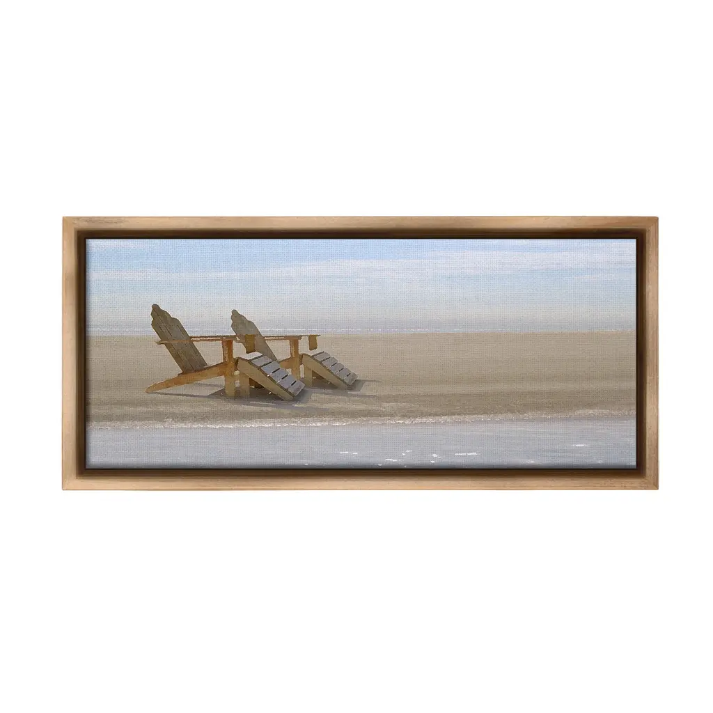 Elevate your home or office to the next level with Stupell Framed Floating Canvas Wall Art. Our premium hand-stretched canvas is mounted securely into a sturdy lightweight frame. The museum-style gap between the wrapped canvas and the box frame gives the illusion of floating artwork. Stupell Wall Art is made in the USA.Features: Dimensions: 25 x 1.7 x 11 Frame, 24 x 1.5 x 10 Canvas ArtFloating Frame Canvas Products are available in sizes 25"x11" and 31"x14". All Floating Frame Canvas Products have a 1.7" Depth.Wall Art is Ready to Hang with Hardware Free Hanging. No Installation required. For Easy Set Up Lean or Layer Artwork on Shelf or Against Wall. Artwork is Permently Fixed into the Frame.Our elevated 1.7" Thick Floating Frame is the perfect complement to our canvas style Wall Art. We use only the highest quality inks in house with industry leading printing solutions. Canvas is hand stretched over a durable wood foundation and then mounted securly into a Modern Box Frame. Made in the USA.Artwork Relates To: Beach, Coast, Sea, Shoreline, Water, Scenery, Landscape, Ocean, ChairDesign by Noah Bay