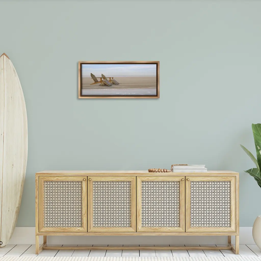 Elevate your home or office to the next level with Stupell Framed Floating Canvas Wall Art. Our premium hand-stretched canvas is mounted securely into a sturdy lightweight frame. The museum-style gap between the wrapped canvas and the box frame gives the illusion of floating artwork. Stupell Wall Art is made in the USA.Features: Dimensions: 25 x 1.7 x 11 Frame, 24 x 1.5 x 10 Canvas ArtFloating Frame Canvas Products are available in sizes 25"x11" and 31"x14". All Floating Frame Canvas Products have a 1.7" Depth.Wall Art is Ready to Hang with Hardware Free Hanging. No Installation required. For Easy Set Up Lean or Layer Artwork on Shelf or Against Wall. Artwork is Permently Fixed into the Frame.Our elevated 1.7" Thick Floating Frame is the perfect complement to our canvas style Wall Art. We use only the highest quality inks in house with industry leading printing solutions. Canvas is hand stretched over a durable wood foundation and then mounted securly into a Modern Box Frame. Made in the USA.Artwork Relates To: Beach, Coast, Sea, Shoreline, Water, Scenery, Landscape, Ocean, ChairDesign by Noah Bay