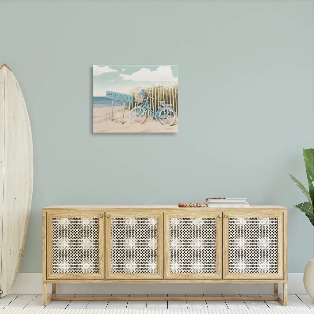 Proudly made in the USA, Our stretched canvas is created with the highest standards. We use only the highest quality inks and canvas on our in house Mimaki printers, and then hand cut and stretch each piece over a 1.5 inch thick wooden frame for hanging. The art comes ready to hang with no installation required. Not to mention, at this size, it is sure to be the focal point of any room!Features:Stretched Canvas Sizes IncludeStandard: 20 x 1.5 x 16Large: 30 x 1.5 x 20X-Large: 40 x 1.5 x 30Oversized: 48 x 1.5 x 36Wall Art is Ready to Hang - No Installation or Hardware Needed. For Easy Set Up Lean or Layer Artwork on Shelf or Against Wall.Artwork Relates To: Bicycle, Bike, Vehicle, Transportation, Beach, Ocean, Water, Sand, ShoreOur stretched canvas is created with the highest standards. We use only the highest quality inks and canvas on our in house Mimaki printers, and then hand cut and stretch each piece over a 1.5 inch thick wooden frame for hanging. Made In USA.Design by James Wiens