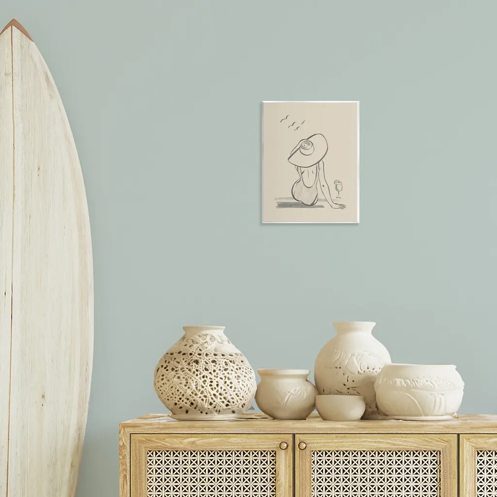 Our wall plaques start as high-quality lithograph prints mounted on durable 0.5-inch thick MDF wood. Each piece is hand finished and comes with a fresh layer of white foil on the sides to give it a crisp, clean look. Plaques arrive ready to hang without installation and come with removable plastic corners to keep them from damage in transit. Stupell Wall Art is made in the USA.Features: Dimensions: 11 x 0.5 x 14 InchesWall Art is Ready to Hang with Hardware Free Hanging. No installation required. For Easy Set Up Lean or Layer Artwork on Shelf or Against Wall.All of our wall plaques start off as high quality lithograph prints that are then mounted on durable 0.5 inch thick MDF wood. Each piece is hand finished and comes with a fresh layer of foil on the sides to give it a crisp clean look. Made In USA.Artwork Relates To: Drawing, Person, Animal, Bird, Sun Hat, Beach, Summer, Swimsuit, CocktailDesign by Grace Popp