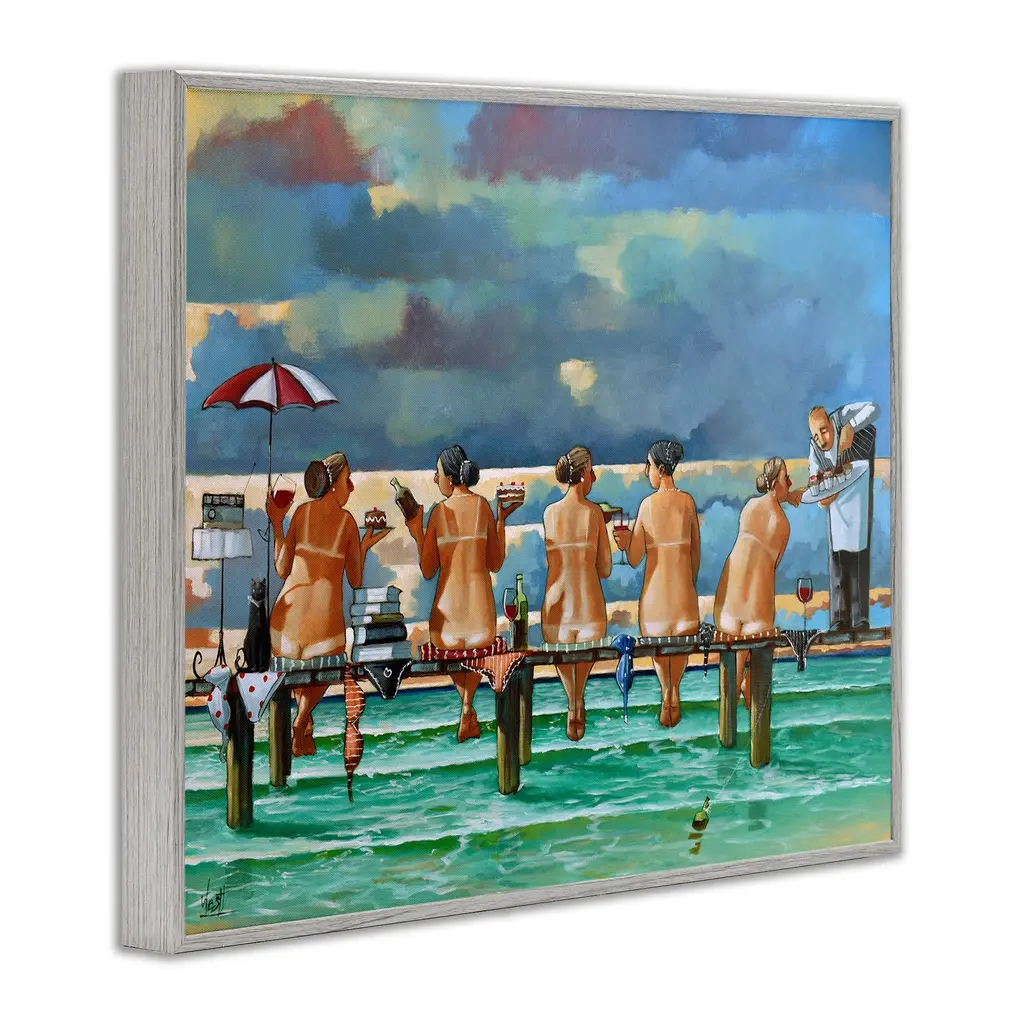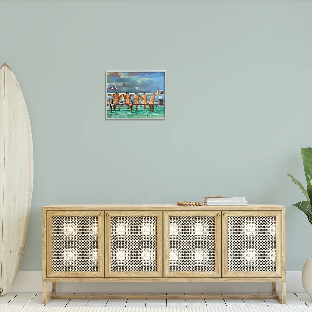 Our Framed Giclee Wall Art adds a touch of class to any space in your home or office. Frames are available in three alluring styles: black, gray farmhouse and white. Our textured artwork will add more depth and dimension to any space. Each piece is mounted with a 1.5 inch thick wood grain frame that is ready to hang! Looking for a statement piece? We have oversized artwork available.Features: Dimensions: 14 x 1.5 x 11 FramedFramed Giclee Sizes Include Standard: 14 x 1.5 x 11 Large: 20 x 1.5 x 16 Oversized: 30 x 1.5 x 24Wall Art is Ready to Hang - No Installation or Hardware Needed. For Easy Set Up Lean or Layer Artwork on Shelf or Against Wall.Our giclée prints are carefully mounted on a durable MDF backing, and then perfectly finished in a 1.5 inch thick woodgrain frame. Mounted frame colors include black, gray farmhouse and white. Made In USA.Artwork Relates To: Waterfront, Water, Back, Person, Summer, Vacation, Fun, Tourist, Dock, Beach, ShoreDesign by Ronald West