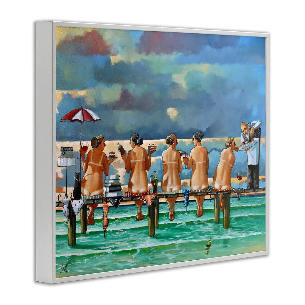 Our Framed Giclee Wall Art adds a touch of class to any space in your home or office. Frames are available in three alluring styles: black, gray farmhouse and white. Our textured artwork will add more depth and dimension to any space. Each piece is mounted with a 1.5 inch thick wood grain frame that is ready to hang! Looking for a statement piece? We have oversized artwork available.Features: Dimensions: 14 x 1.5 x 11 FramedFramed Giclee Sizes Include Standard: 14 x 1.5 x 11 Large: 20 x 1.5 x 16 Oversized: 30 x 1.5 x 24Wall Art is Ready to Hang - No Installation or Hardware Needed. For Easy Set Up Lean or Layer Artwork on Shelf or Against Wall.Our giclée prints are carefully mounted on a durable MDF backing, and then perfectly finished in a 1.5 inch thick woodgrain frame. Mounted frame colors include black, gray farmhouse and white. Made In USA.Artwork Relates To: Waterfront, Water, Back, Person, Summer, Vacation, Fun, Tourist, Dock, Beach, ShoreDesign by Ronald West