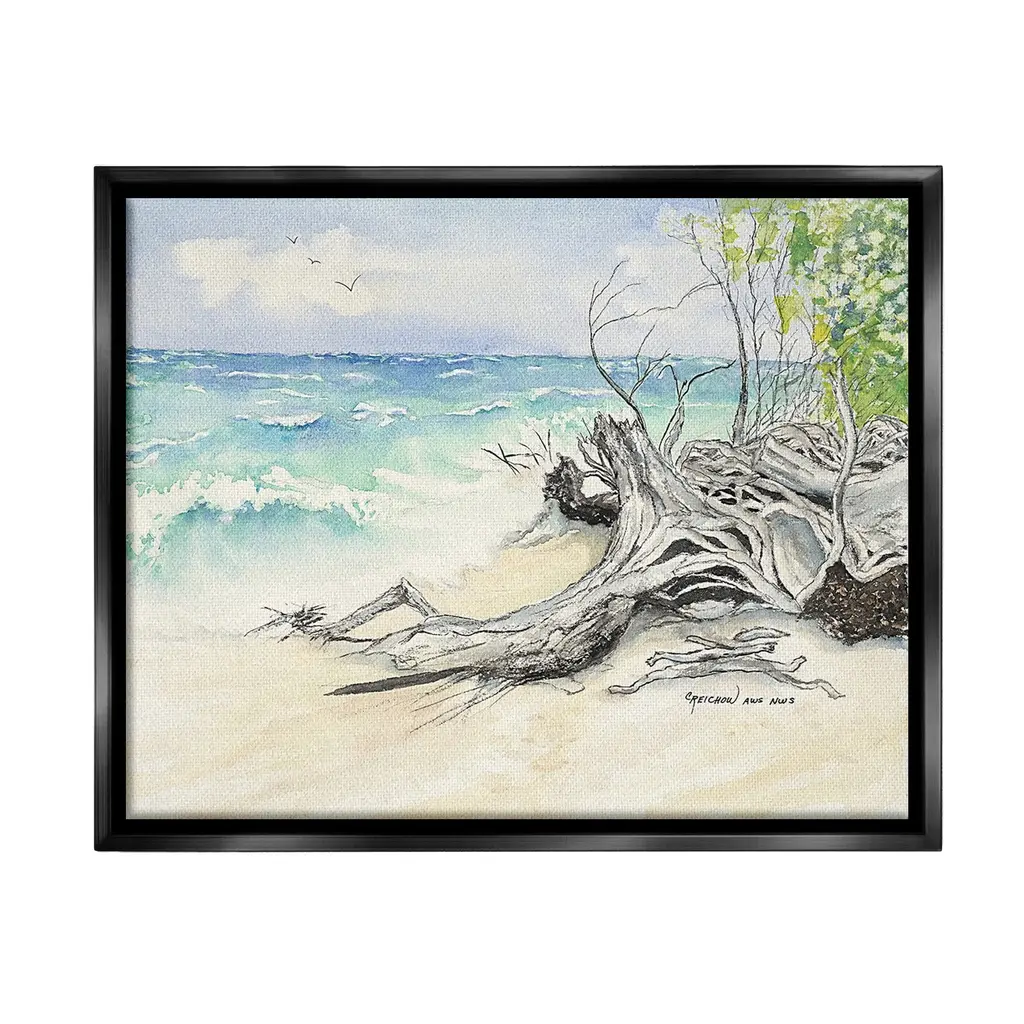 Stupell Beach Driftwood Landscape Framed Giclee Art Design By Christine Reichow - 30 X 24 - Black