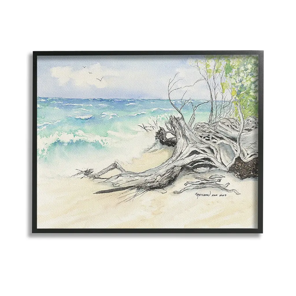Add dimension to any room with our textured Framed Giclee Artwork. Our framed artwork is securely mounted into a 1.5-inch thick wood grain frame and ready to hang. Frames are available in three alluring styles: black, gray farmhouse and white. In addition, you should check out our oversized options if you want a statement piece. Stupell Wall Art is made in the USA.Features: Dimensions: 14 x 1.5 x 11 FramedFramed Giclee Products are available in the sizes 14"x11", 20"x16" or 30"x24". All Framed Giclee Products have a 1.5" Depth. Wall Art is Ready to Hang with Hardware Free Hanging. No installation required. For Easy Set Up Lean or Layer Artwork on Shelf or Against Wall.Our giclée prints are carefully mounted on a durable MDF backing, and then perfectly finished in a 1.5 inch thick woodgrain frame. Mounted frame colors include black, gray farmhouse and white. Made In USA.Artwork Relates To: Sky, Horizon, Sea, Water, Beach, Coast, Shoreline, Scenery, Sea Waves, SummerDesign by Christine Reichow