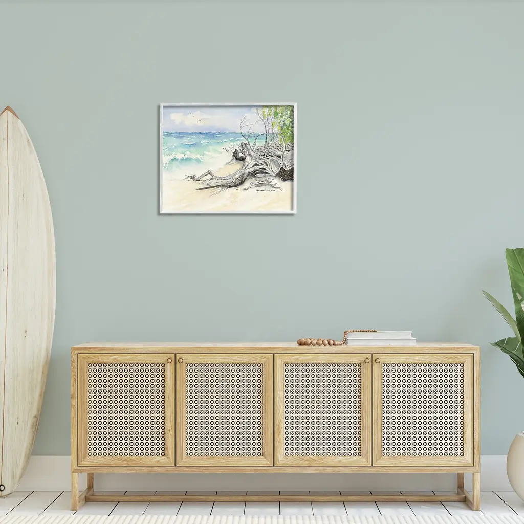 Stupell Beach Driftwood Landscape Framed Giclee Art Design By Christine Reichow - 30 X 24 - White