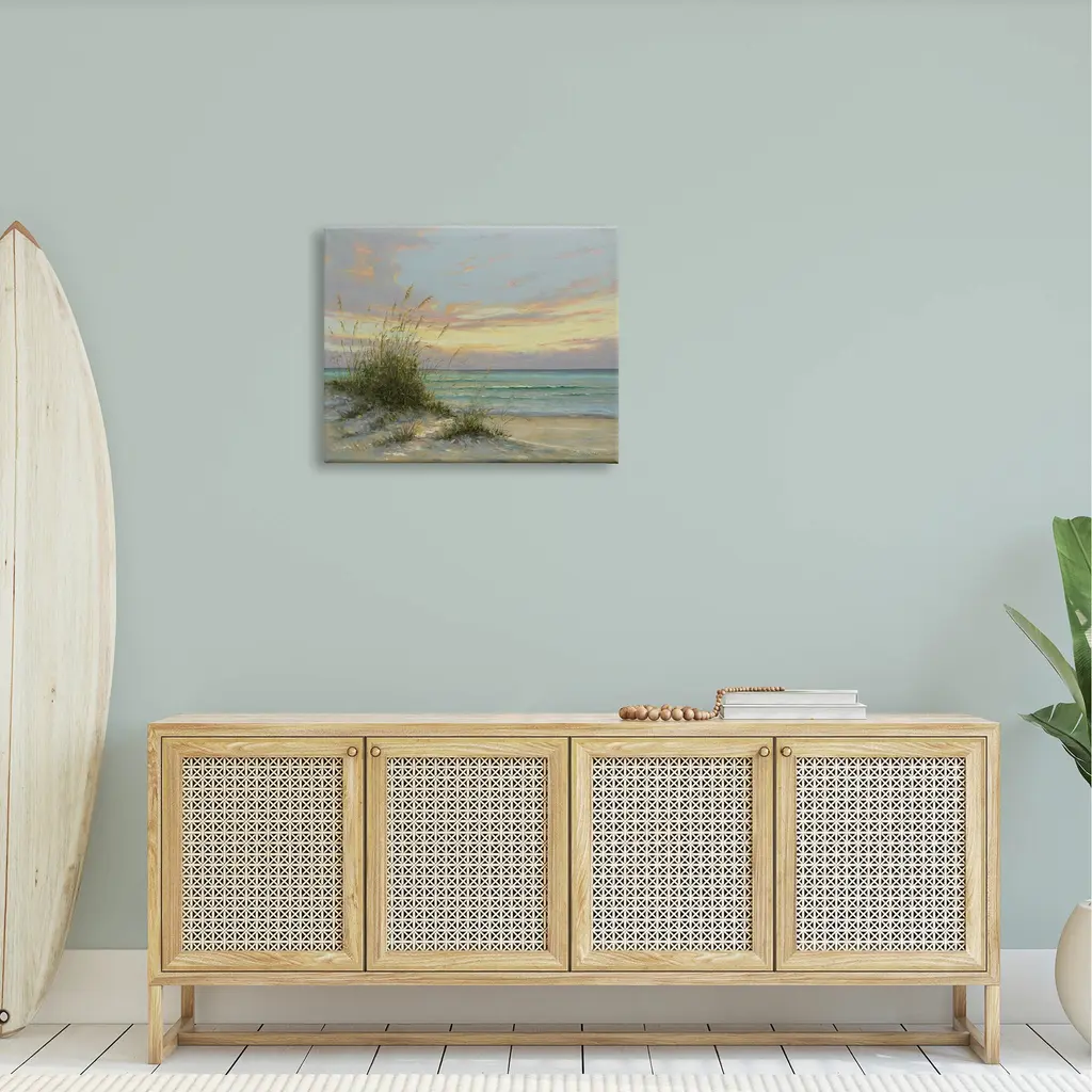 Proudly made in the USA, Our stretched canvas is created with the highest standards. We use only the highest quality inks and canvas on our in house Mimaki printers, and then hand cut and stretch each piece over a 1.5 inch thick wooden frame for hanging. The art comes ready to hang with no installation required.Features: Dimensions: 20 x 1.5 x 16 InchesStretched Canvas Sizes Include Standard: 20 x 1.5 x 16 Large: 30 x 1.5 x 20 X-Large: 40 x 1.5 x 30 Oversized: 48 x 1.5 x 36Wall Art is Ready to Hang - No Installation or Hardware Needed. For Easy Set Up Lean or Layer Artwork on Shelf or Against Wall.Our stretched canvas is created with the highest standards. We use only the highest quality inks and canvas on our in house Mimaki printers, and then hand cut and stretch each piece over a 1.5 inch thick wooden frame for hanging. Made In USA.Artwork Relates To: Grass, Plant, Beach, Sea, Water, Shoreline, Coast, Sky, Reed, Landscape, Horizon, Nautical, Sunrise, SunsetDesign by Martin Figlinski
