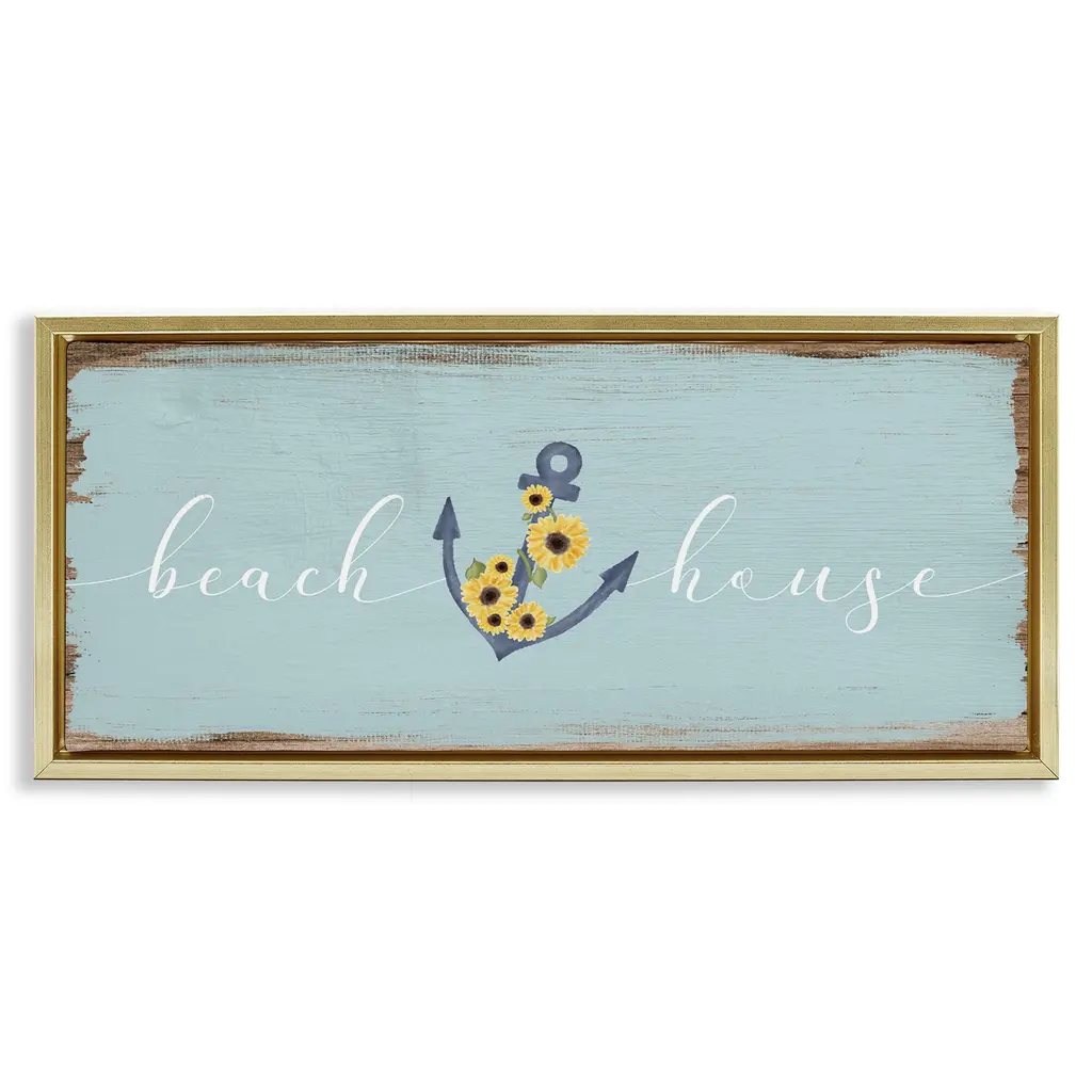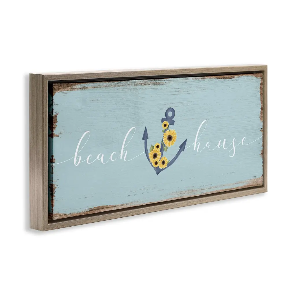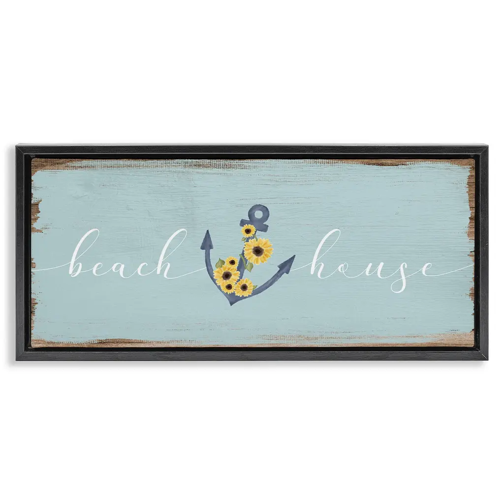 Elevate your home or office to the next level with Stupell Framed Floating Canvas Wall Art. Our premium hand-stretched canvas is mounted securely into a sturdy lightweight frame. The museum-style gap between the wrapped canvas and the box frame gives the illusion of floating artwork. Stupell Wall Art is made in the USA.Features: Dimensions: 25 x 1.7 x 11 Frame, 24 x 1.5 x 10 Canvas ArtFloating Frame Canvas Products are available in sizes 25"x11" and 31"x14". All Floating Frame Canvas Products have a 1.7" Depth.Wall Art is Ready to Hang with Hardware Free Hanging. No Installation required. For Easy Set Up Lean or Layer Artwork on Shelf or Against Wall. Artwork is Permently Fixed into the Frame.Our elevated 1.7" Thick Floating Frame is the perfect complement to our canvas style Wall Art. We use only the highest quality inks in house with industry leading printing solutions. Canvas is hand stretched over a durable wood foundation and then mounted securly into a Modern Box Frame. Made in the USA.Artwork Relates To: Nautical, Anchor, Flower, Sunflower, Rustic, Beach, Phrase, Lake HouseDesign by Daphne Polselli