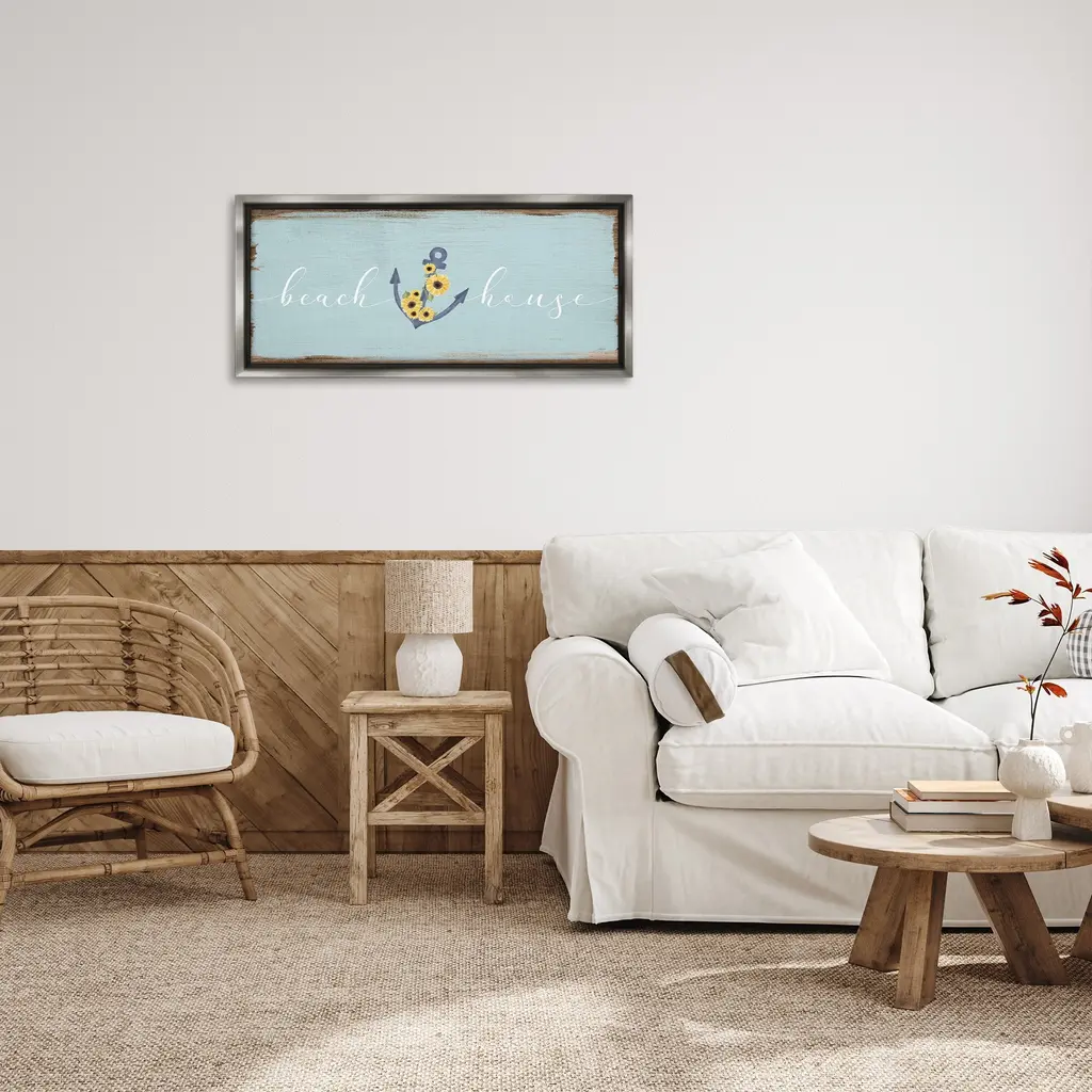 Stupell Beach House With Floral Anchor Framed Floater Canvas Wall Art Design By Daphne Polselli - 31 X 14 - Grey