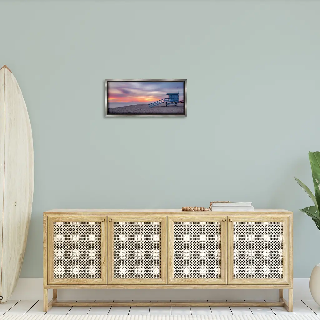 Elevate your home or office to the next level with Stupell Framed Floating Canvas Wall Art. Our premium hand-stretched canvas is mounted securely into a sturdy lightweight frame. The museum-style gap between the wrapped canvas and the box frame gives the illusion of floating artwork. Stupell Wall Art is made in the USA.Features: Dimensions: 25 x 1.7 x 11 Frame, 24 x 1.5 x 10 Canvas ArtFloating Frame Canvas Products are available in sizes 25"x11" and 31"x14". All Floating Frame Canvas Products have a 1.7" Depth.Wall Art is Ready to Hang with Hardware Free Hanging. No Installation required. For Easy Set Up Lean or Layer Artwork on Shelf or Against Wall. Artwork is Permently Fixed into the Frame.Our elevated 1.7" Thick Floating Frame is the perfect complement to our canvas style Wall Art. We use only the highest quality inks in house with industry leading printing solutions. Canvas is hand stretched over a durable wood foundation and then mounted securly into a Modern Box Frame. Made in the USA.Artwork Relates To: Building, Sky, Nature, Beach, Sea, Water, Shoreline, Coast, Sunrise, Scenery, Sun, SunsetDesign by Jeff Poe