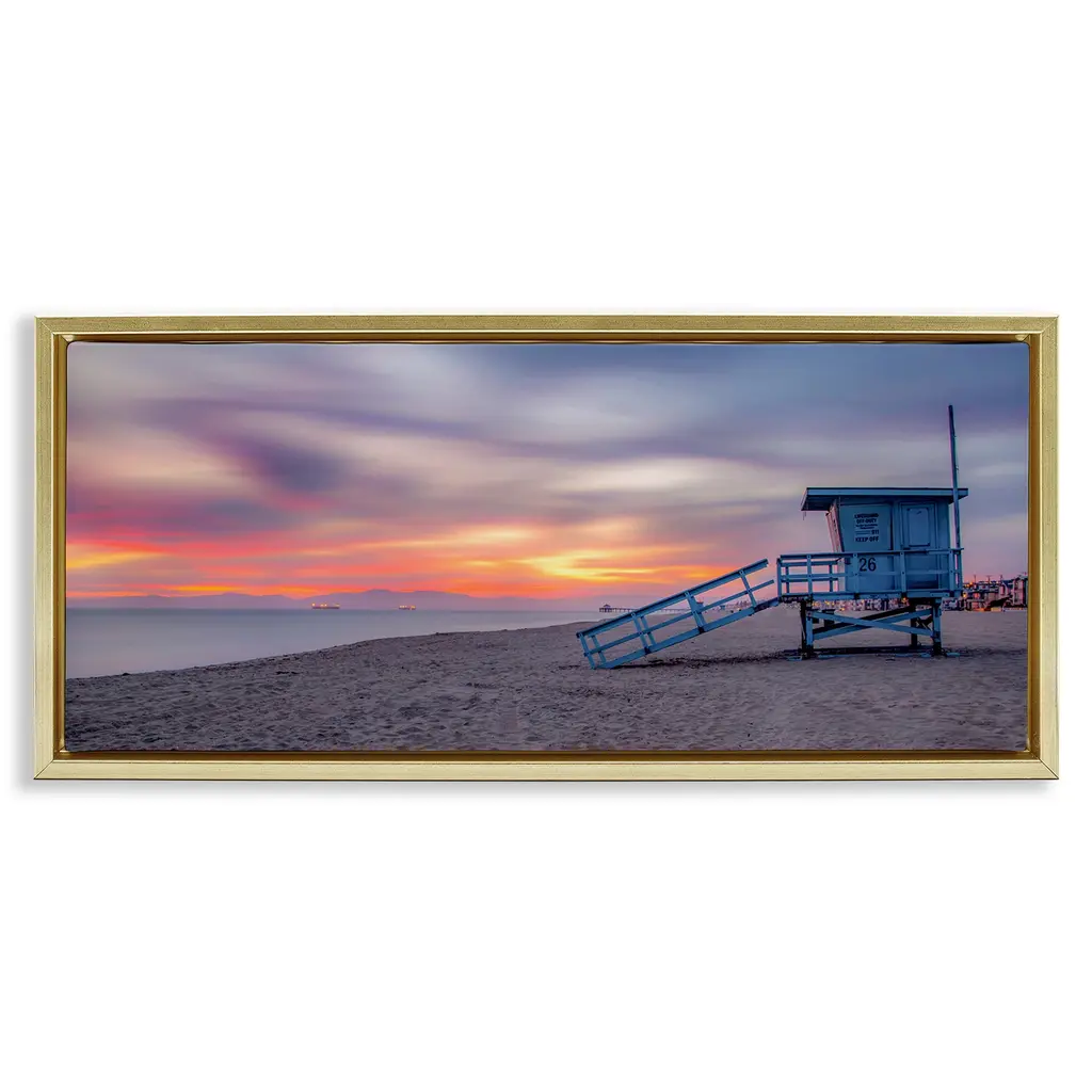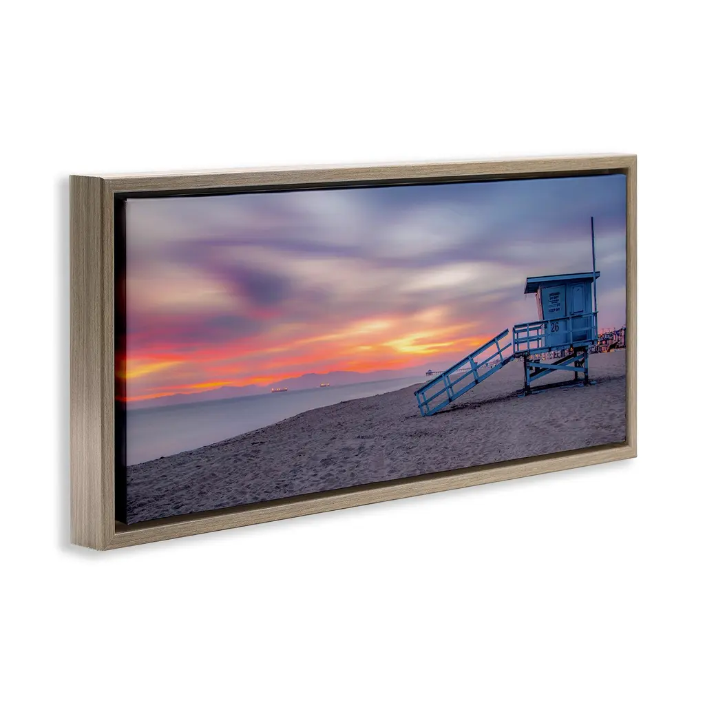 Elevate your home or office to the next level with Stupell Framed Floating Canvas Wall Art. Our premium hand-stretched canvas is mounted securely into a sturdy lightweight frame. The museum-style gap between the wrapped canvas and the box frame gives the illusion of floating artwork. Stupell Wall Art is made in the USA.Features: Dimensions: 25 x 1.7 x 11 Frame, 24 x 1.5 x 10 Canvas ArtFloating Frame Canvas Products are available in sizes 25"x11" and 31"x14". All Floating Frame Canvas Products have a 1.7" Depth.Wall Art is Ready to Hang with Hardware Free Hanging. No Installation required. For Easy Set Up Lean or Layer Artwork on Shelf or Against Wall. Artwork is Permently Fixed into the Frame.Our elevated 1.7" Thick Floating Frame is the perfect complement to our canvas style Wall Art. We use only the highest quality inks in house with industry leading printing solutions. Canvas is hand stretched over a durable wood foundation and then mounted securly into a Modern Box Frame. Made in the USA.Artwork Relates To: Building, Sky, Nature, Beach, Sea, Water, Shoreline, Coast, Sunrise, Scenery, Sun, SunsetDesign by Jeff Poe