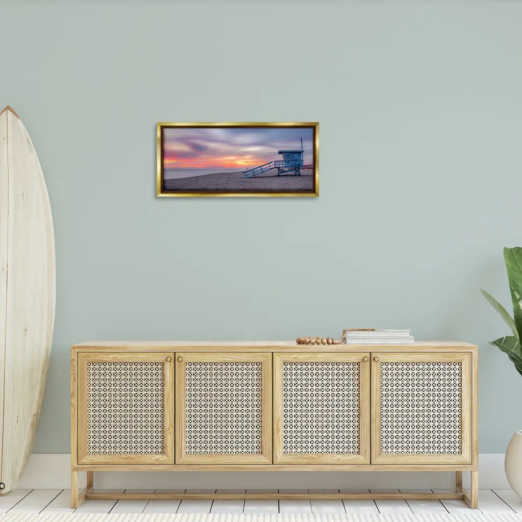 Elevate your home or office to the next level with Stupell Framed Floating Canvas Wall Art. Our premium hand-stretched canvas is mounted securely into a sturdy lightweight frame. The museum-style gap between the wrapped canvas and the box frame gives the illusion of floating artwork. Stupell Wall Art is made in the USA.Features: Dimensions: 25 x 1.7 x 11 Frame, 24 x 1.5 x 10 Canvas ArtFloating Frame Canvas Products are available in sizes 25"x11" and 31"x14". All Floating Frame Canvas Products have a 1.7" Depth.Wall Art is Ready to Hang with Hardware Free Hanging. No Installation required. For Easy Set Up Lean or Layer Artwork on Shelf or Against Wall. Artwork is Permently Fixed into the Frame.Our elevated 1.7" Thick Floating Frame is the perfect complement to our canvas style Wall Art. We use only the highest quality inks in house with industry leading printing solutions. Canvas is hand stretched over a durable wood foundation and then mounted securly into a Modern Box Frame. Made in the USA.Artwork Relates To: Building, Sky, Nature, Beach, Sea, Water, Shoreline, Coast, Sunrise, Scenery, Sun, SunsetDesign by Jeff Poe