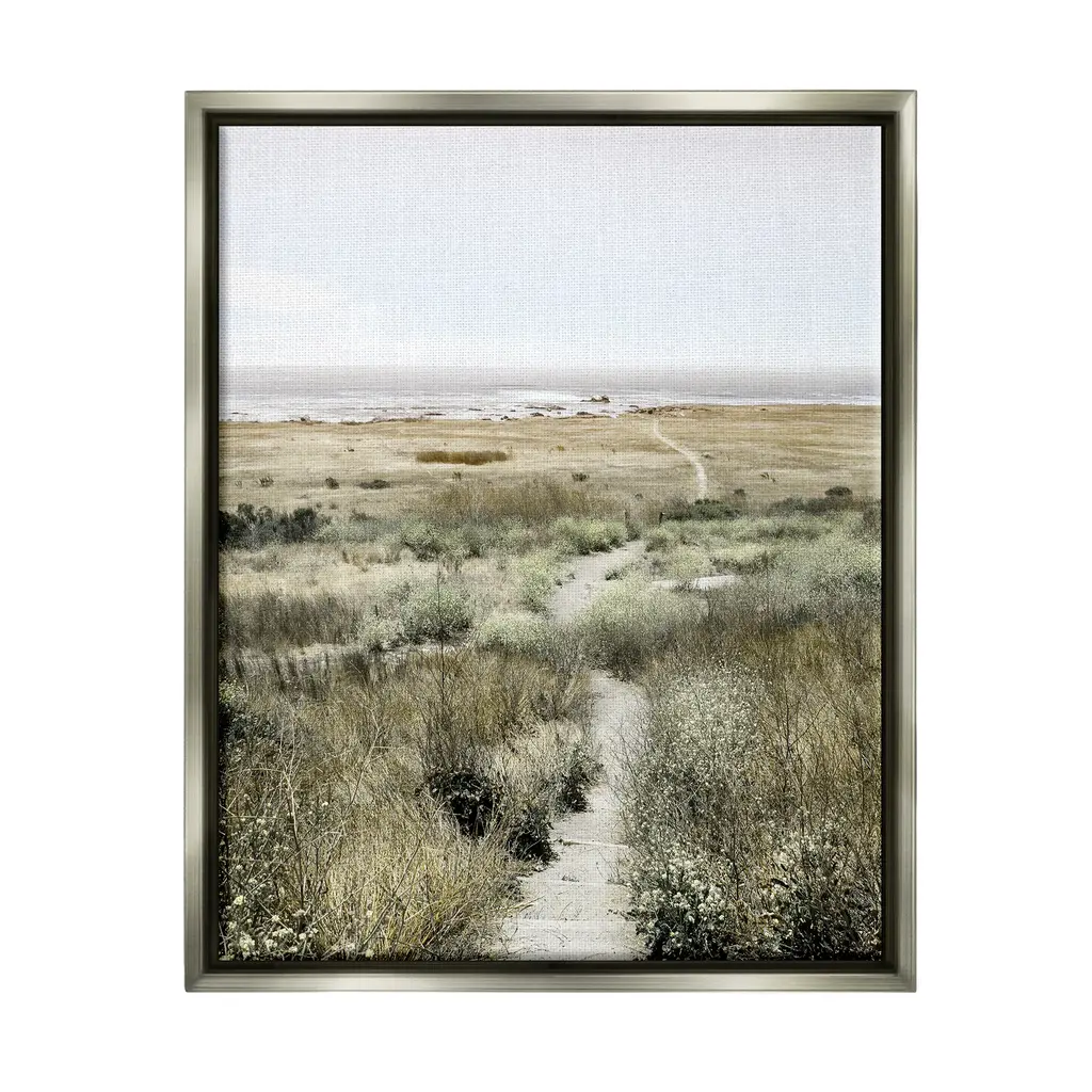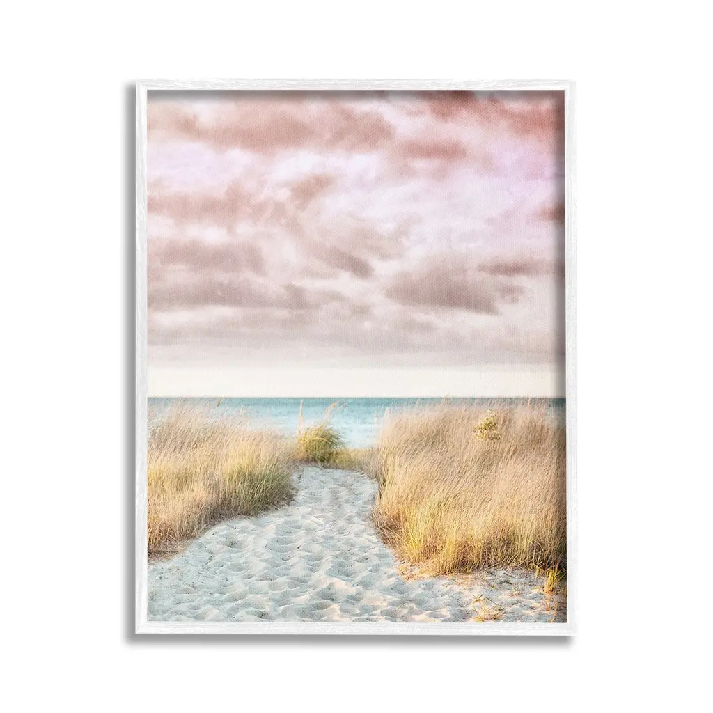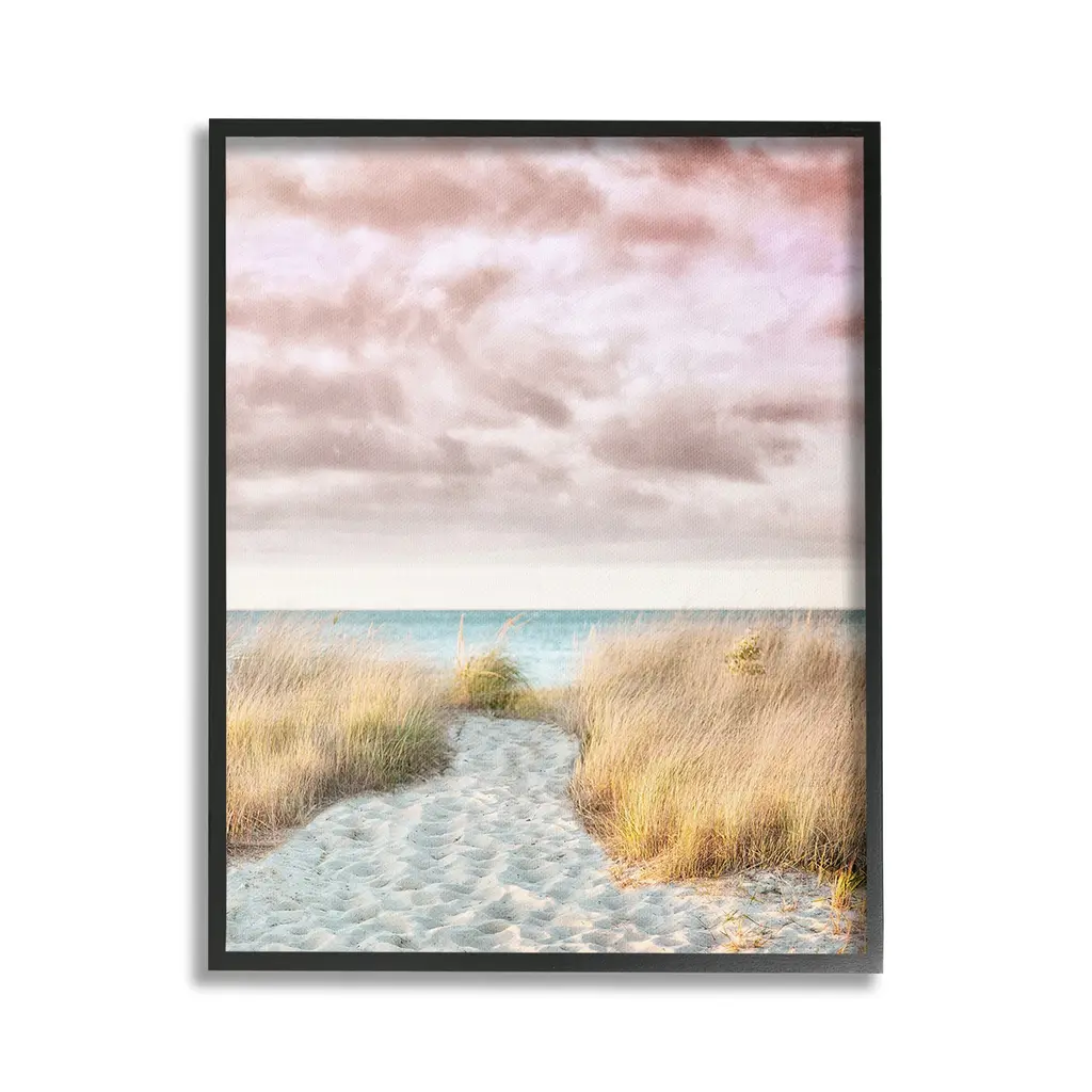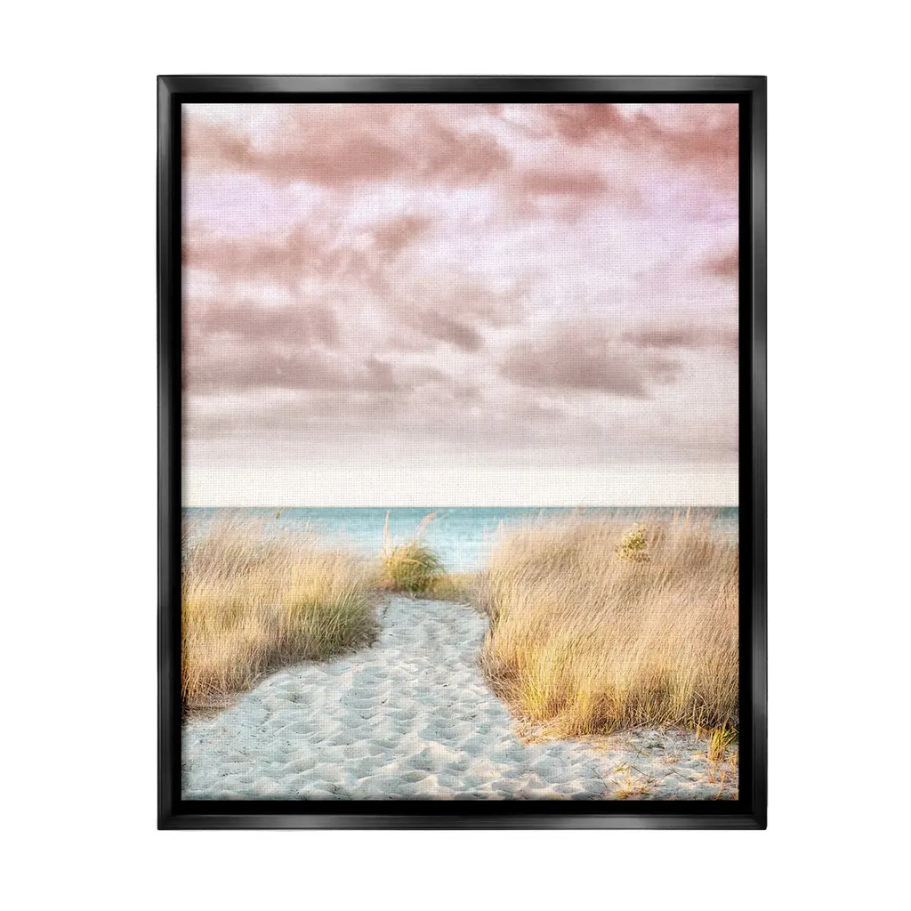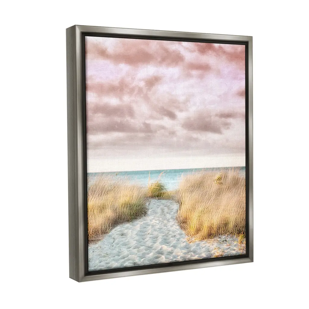 Stupell Beach Path With Pink Sky Framed Floater Canvas Wall Art Design By Brooke T. Ryan - 17 X 21 - Grey