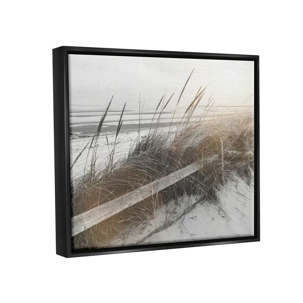 Elevate your home or office to the next level with Stupell Framed Floating Canvas Wall Art. Our premium hand-stretched canvas is mounted securely into a sturdy lightweight frame. The museum-style gap between the wrapped canvas and the box frame gives the illusion of floating artwork. Stupell Wall Art is made in the USA.Features: Dimensions: 21 x 1.7 x 17 Frame, 20 x 1.5 x 16 Canvas ArtFloating Frame Sizes Include Standard: 21 x 1.7 x 17 Oversized: 31 x 1.7 x 25Wall Art is Ready to Hang - No Installation or Hardware Needed. For Easy Set Up Lean or Layer Artwork on Shelf or Against Wall.Our elevated 1.7" Thick Floating Frame is the perfect complement to our canvas style Wall Art. We use only the highest quality inks in house with industry leading printing solutions. Canvas is hand stretched over a durable wood foundation and then mounted securly into a Modern Box Frame. Made in the USA.Artwork Relates To: Plant, Reed, Nature, Outdoors, Beach, Coast, Sea, Shoreline, Water, Horizon, BoardwalkDesign by Graffi*Tee Studios